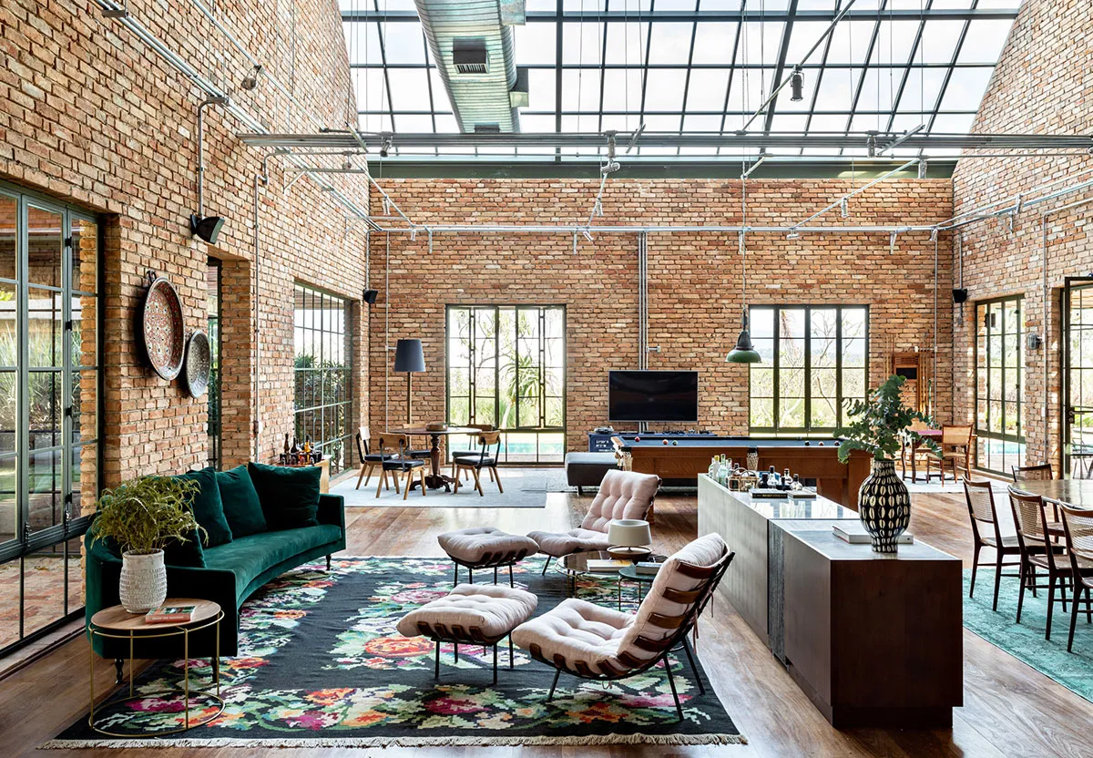 Ladrillo rojo y techo de vidrio: casa en estilo industrial en Brasil