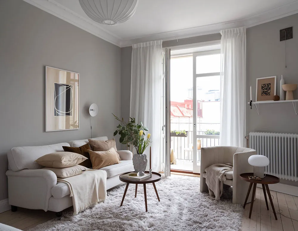 Interior gris agradable con suaves toques cálidos en Suecia (41 m²)