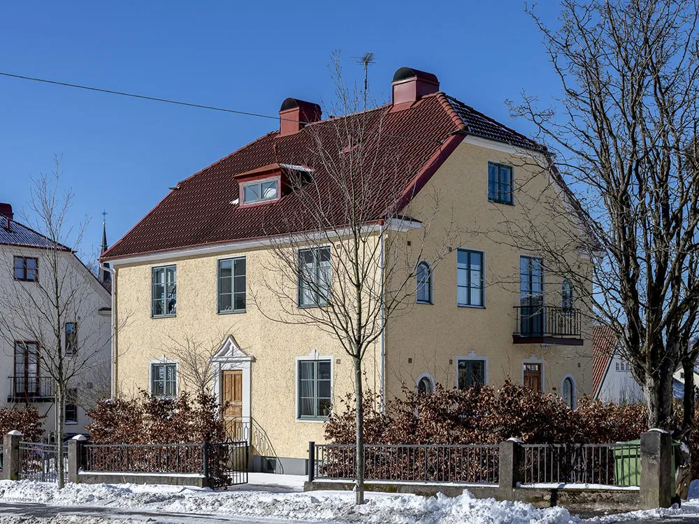 Casa blanca con grandes ventanas en Suecia