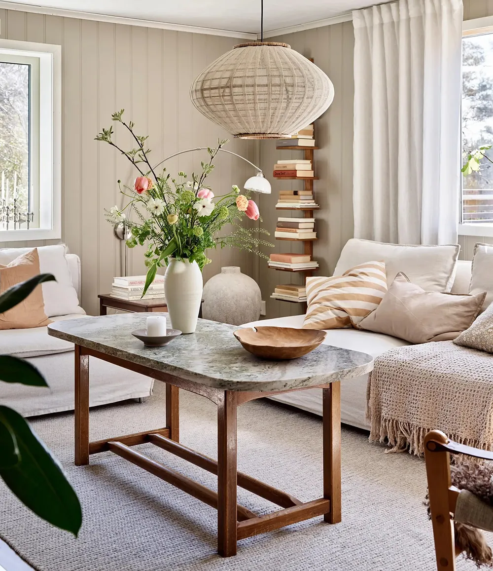 Interior cálido en tonos beige-gris en Gotemburgo (66 m²)