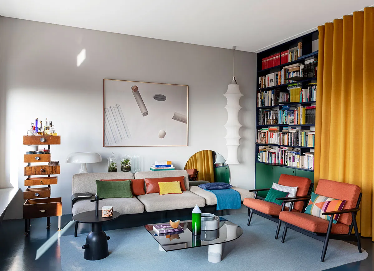 Interior colorido de una pareja creativa en Turín