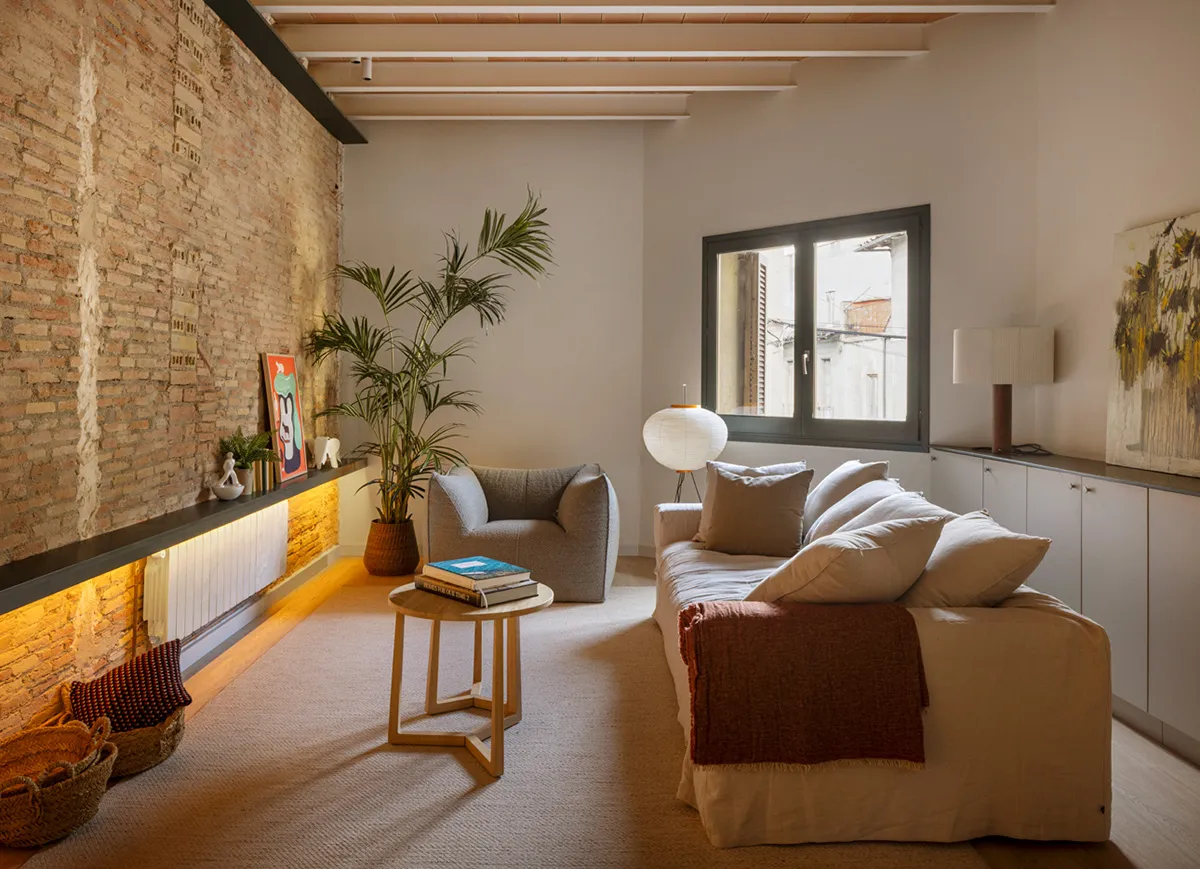 Balcones, pared de ladrillo y distribución incomoda: apartamento en Barcelona (65 m²)