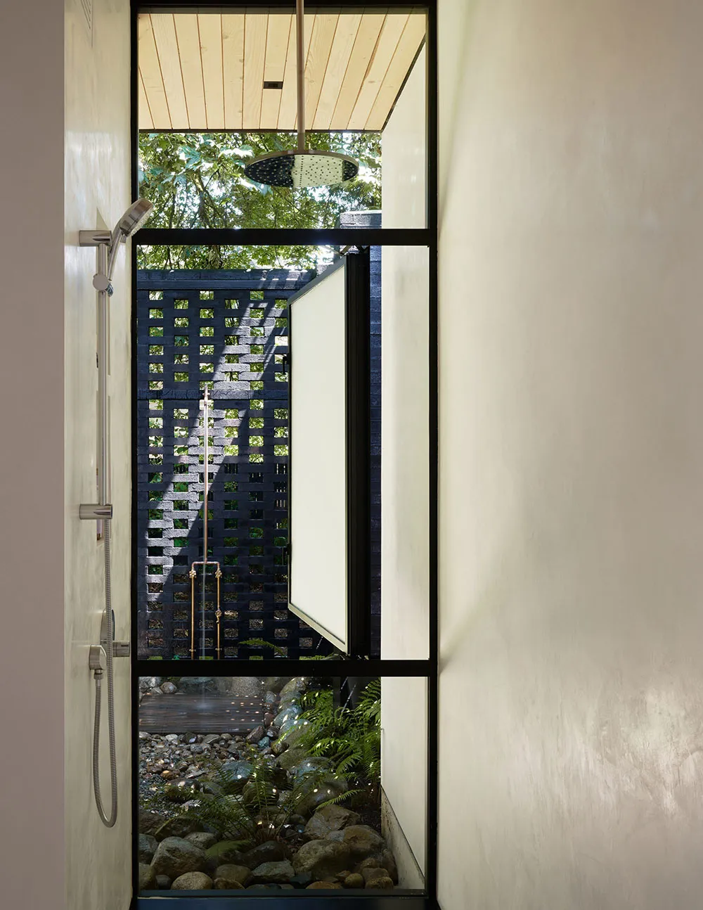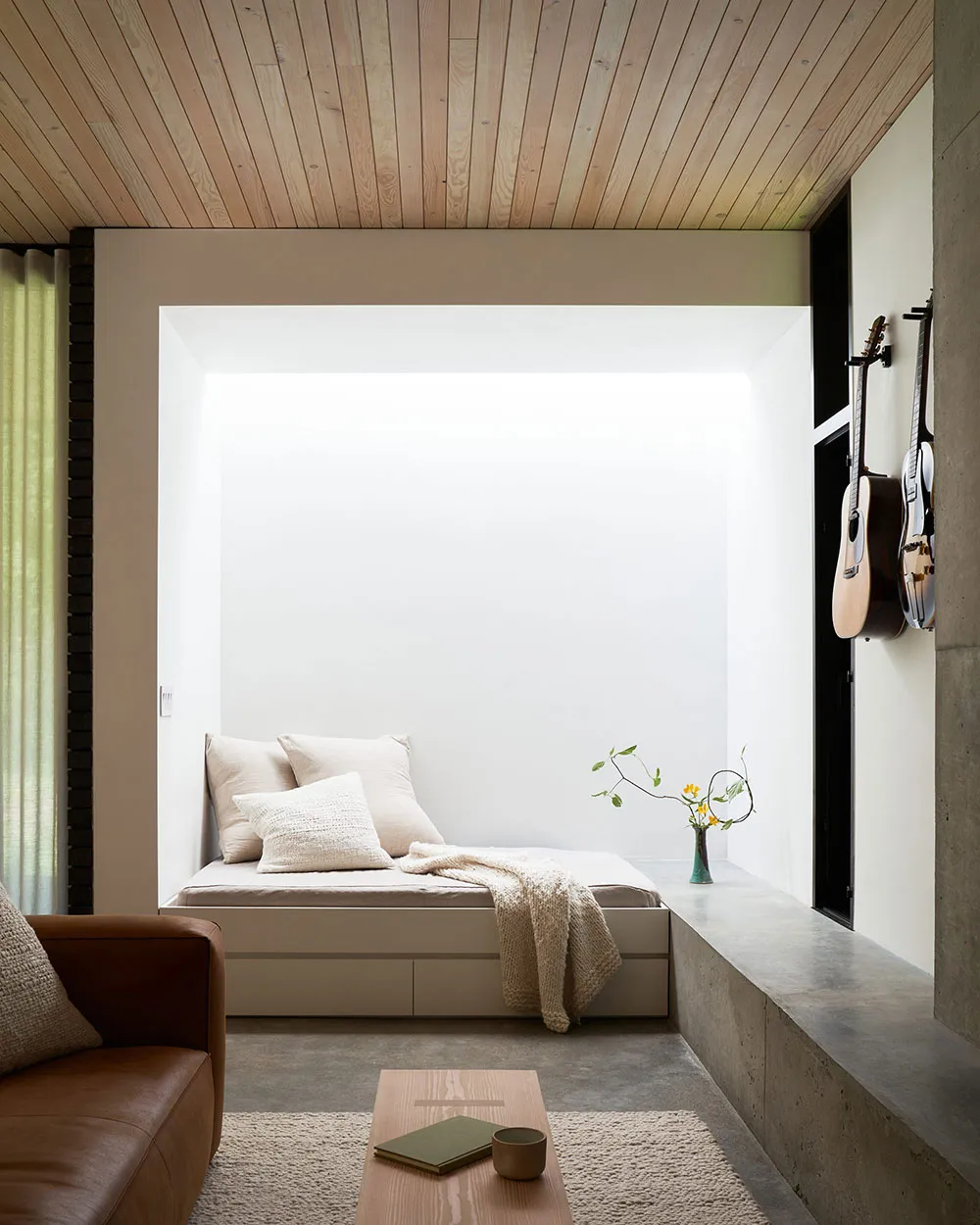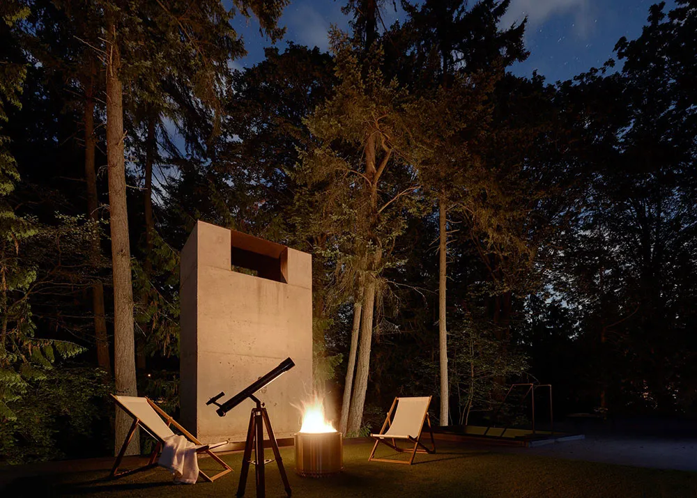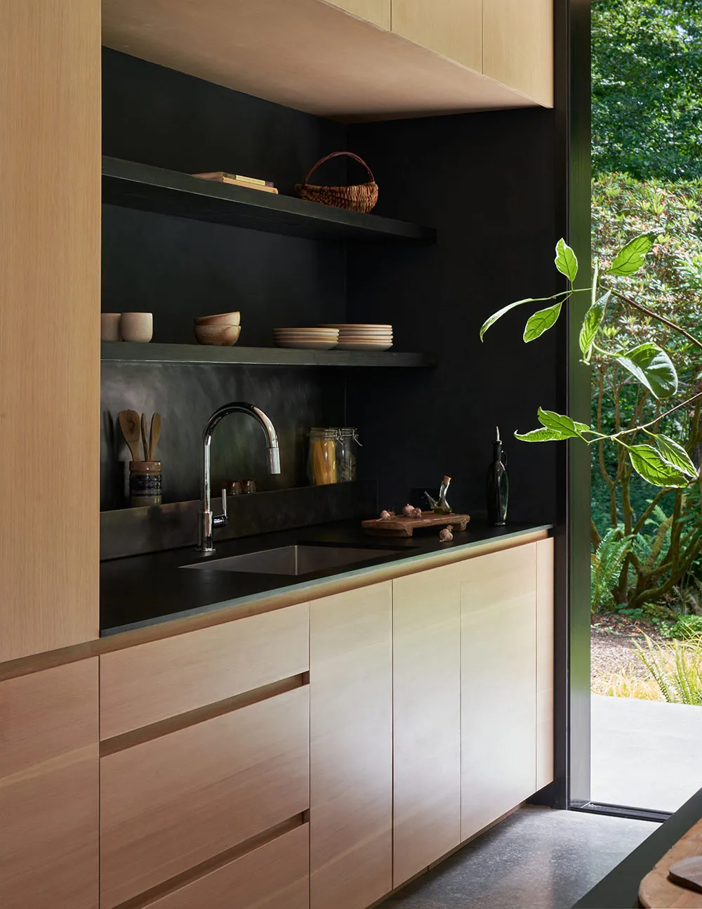 Esta moderna cabaña en el bosque cerca de Seattle parece bastante pequeña desde afuera: una estructura de un solo piso con materiales naturales se integra perfectamente en el paisaje local.