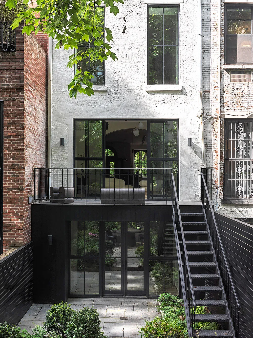 En los interiores renovados de esta casa histórica en Nueva York, abunda la luz natural: una segunda fuente de luz, mínima decoración y ausencia de cortinas hacen su trabajo.