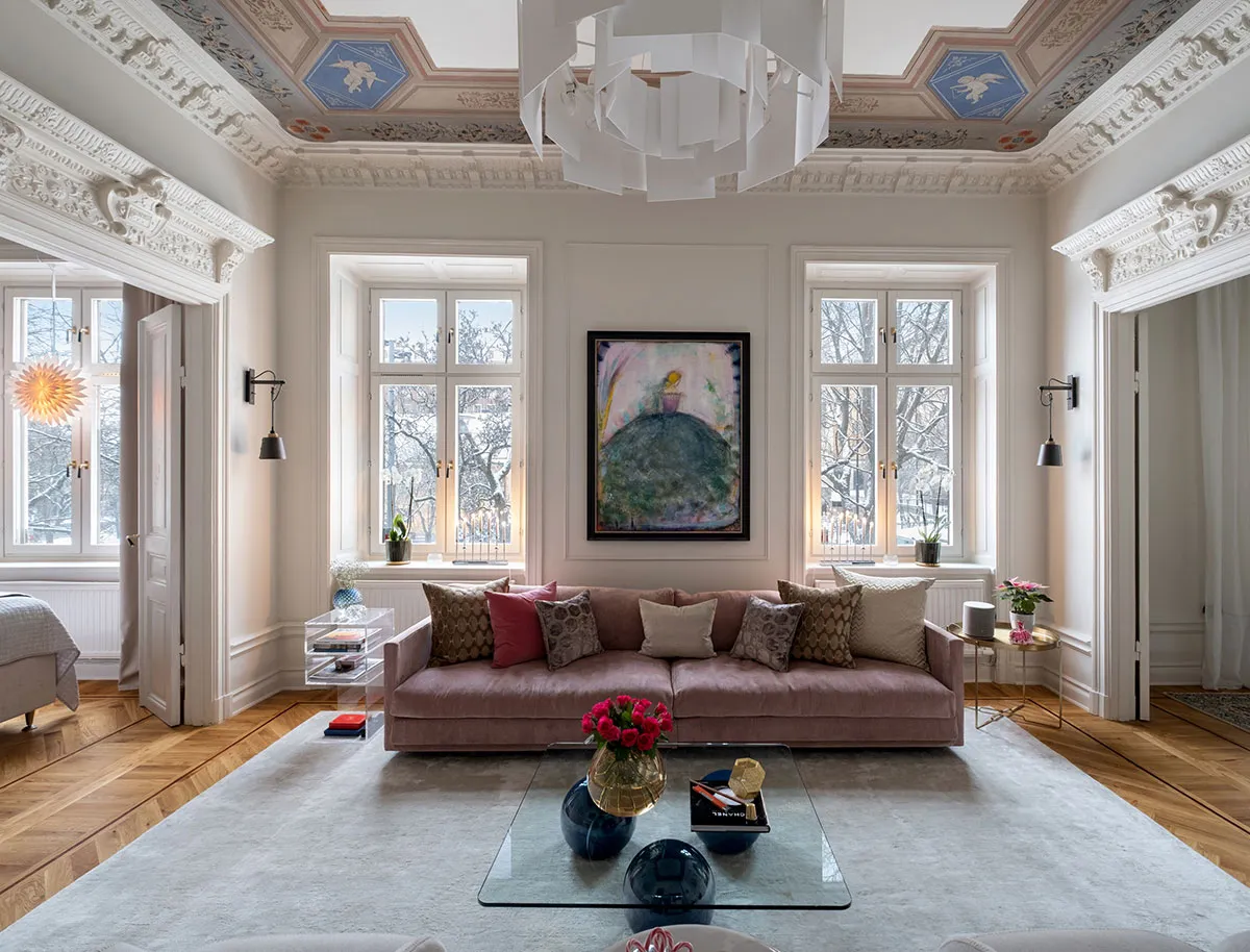 Techo pintado y ricura de molduras: la clásica moderna sueca