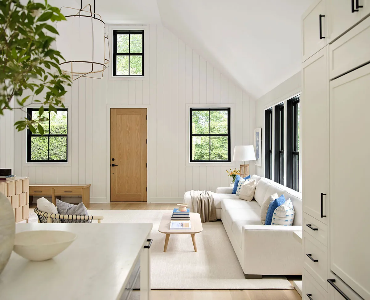 Estilosos interiores blanco y negro en casa histórica de Sídney