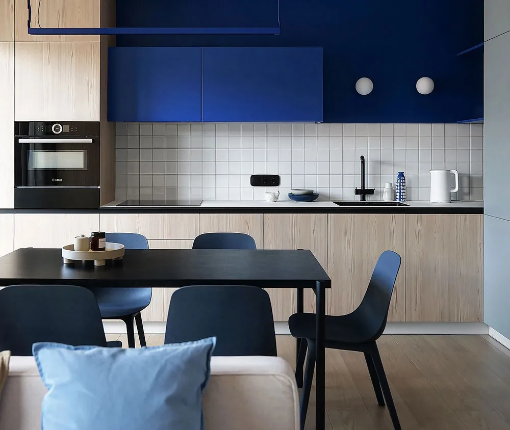 Atrevido azul en el diseño de un apartamento pequeño en Kiev (42 m²)