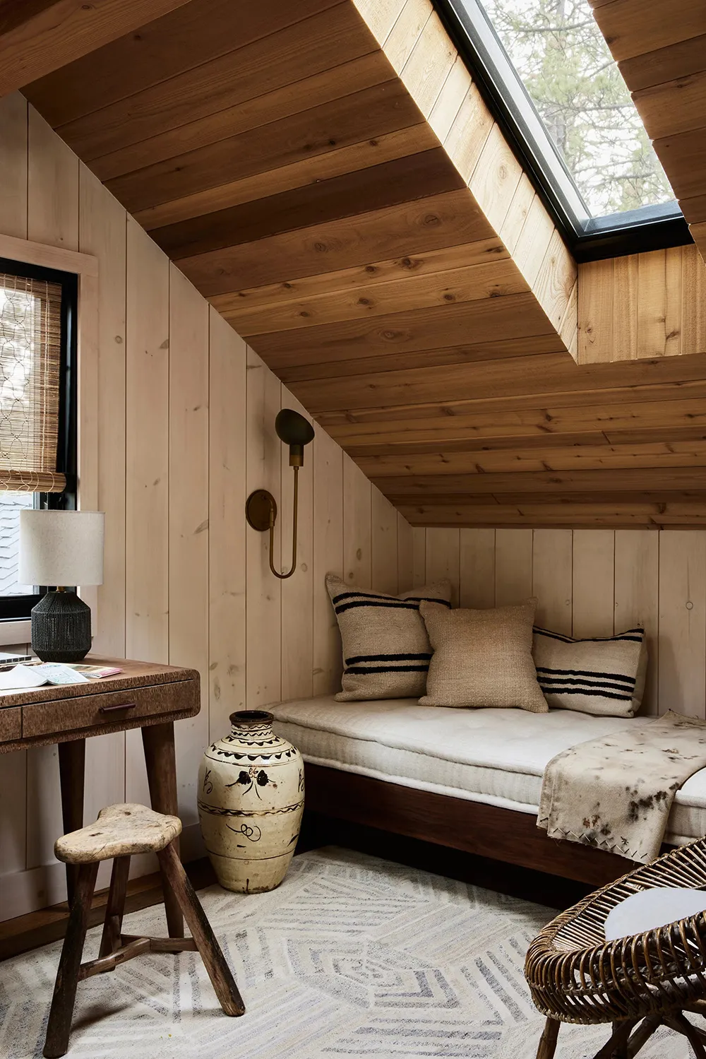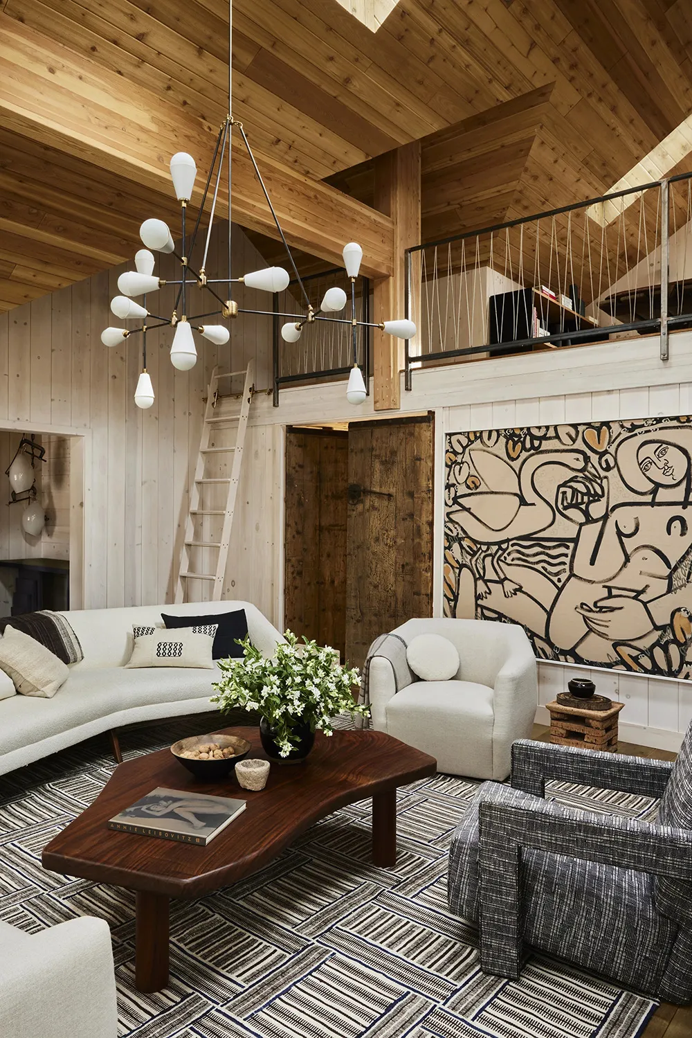 El diseñador Ohara Davies-Gaetano añadió mucho estilo a los interiores de esta cabaña de montaña en California, sin infringir las reglas tradicionales de decoración de este tipo de vivienda de resort.