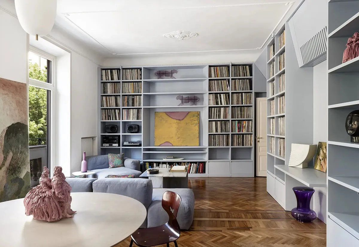 Tonos azules y colección de vinilos: apartamento de DJ en Roma