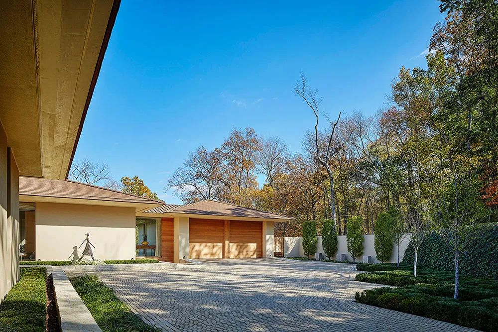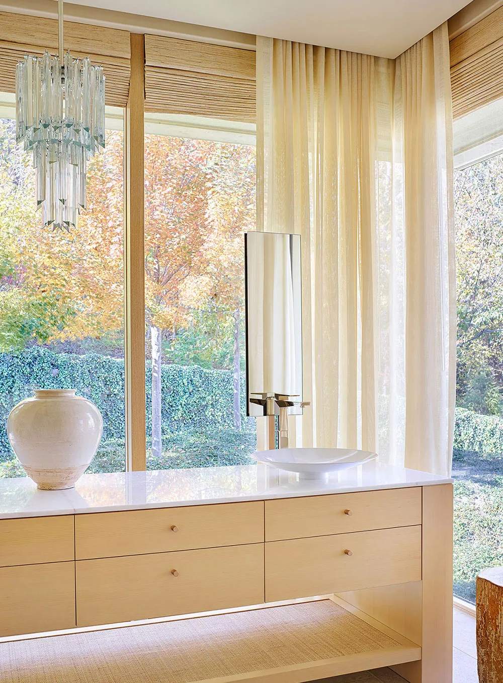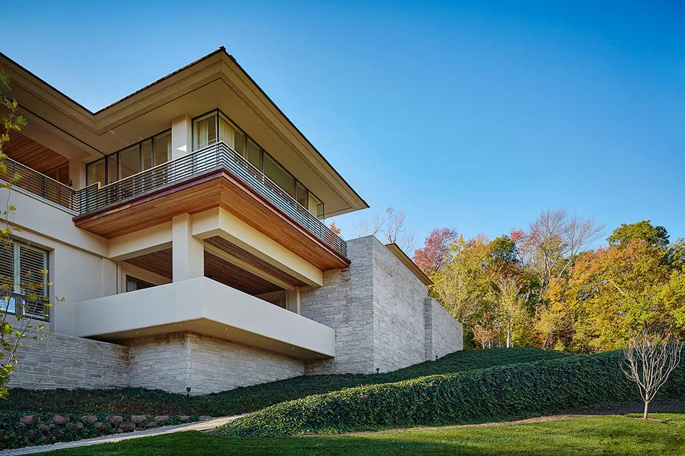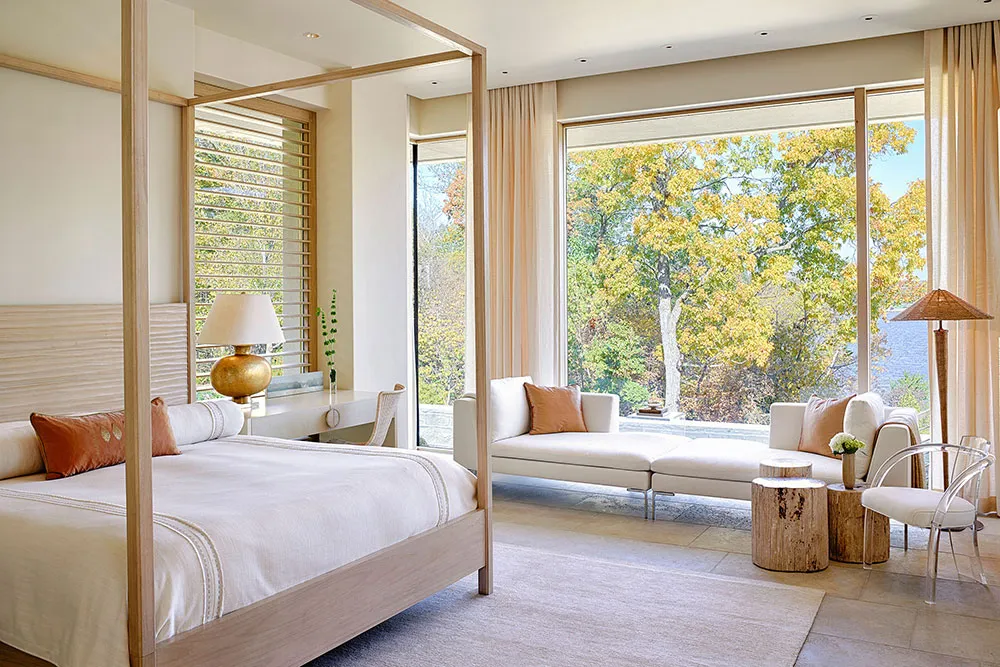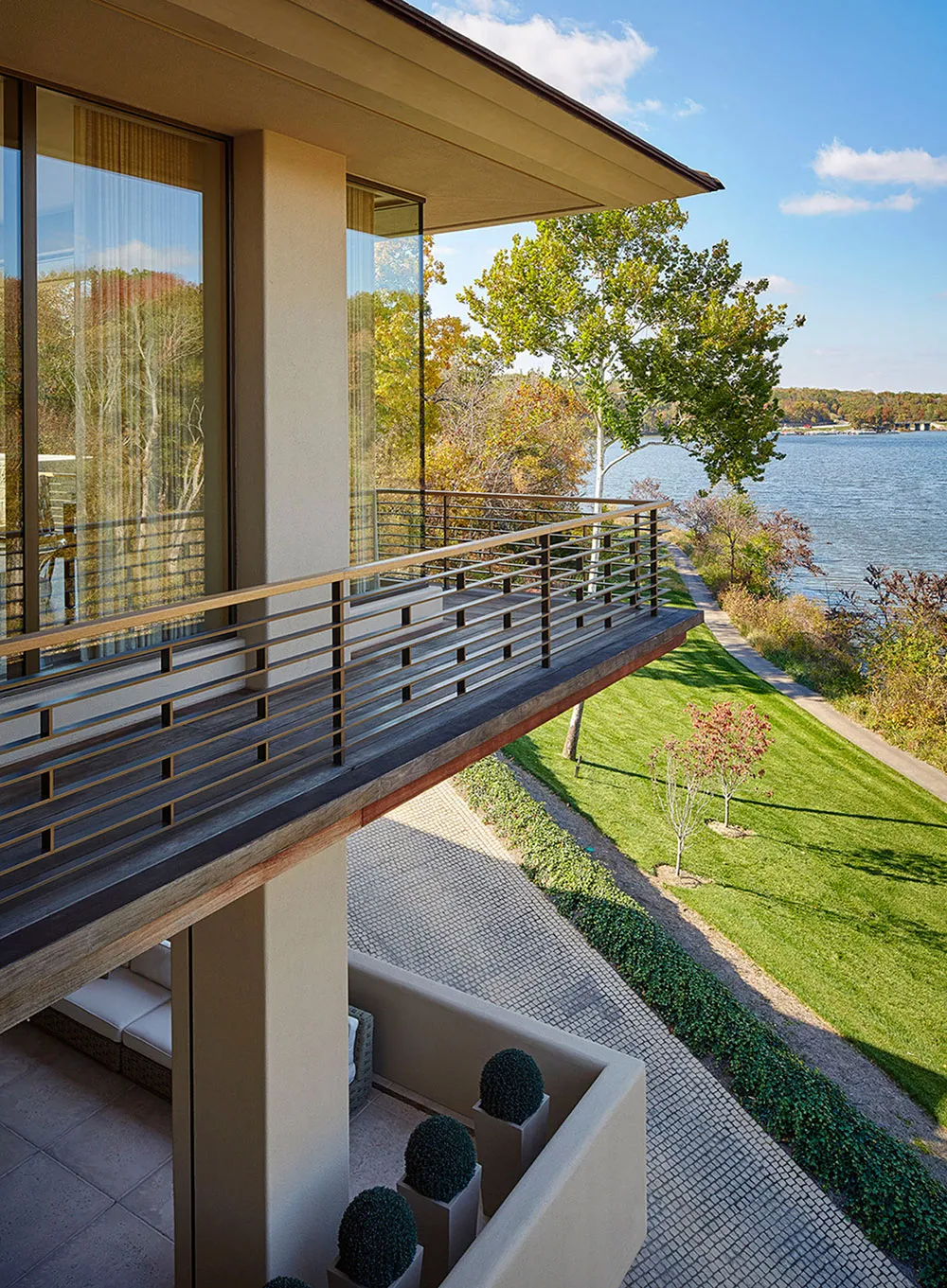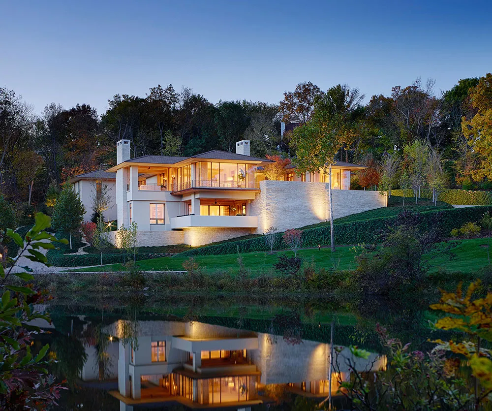 Interiores de leche agradable en una gran casa junto al lago en EE. UU.