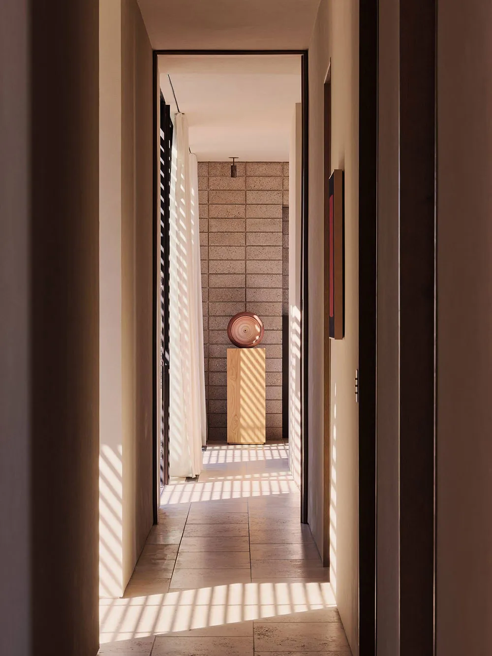 Diseño minimalista de interiores con luz natural cálida en Milán