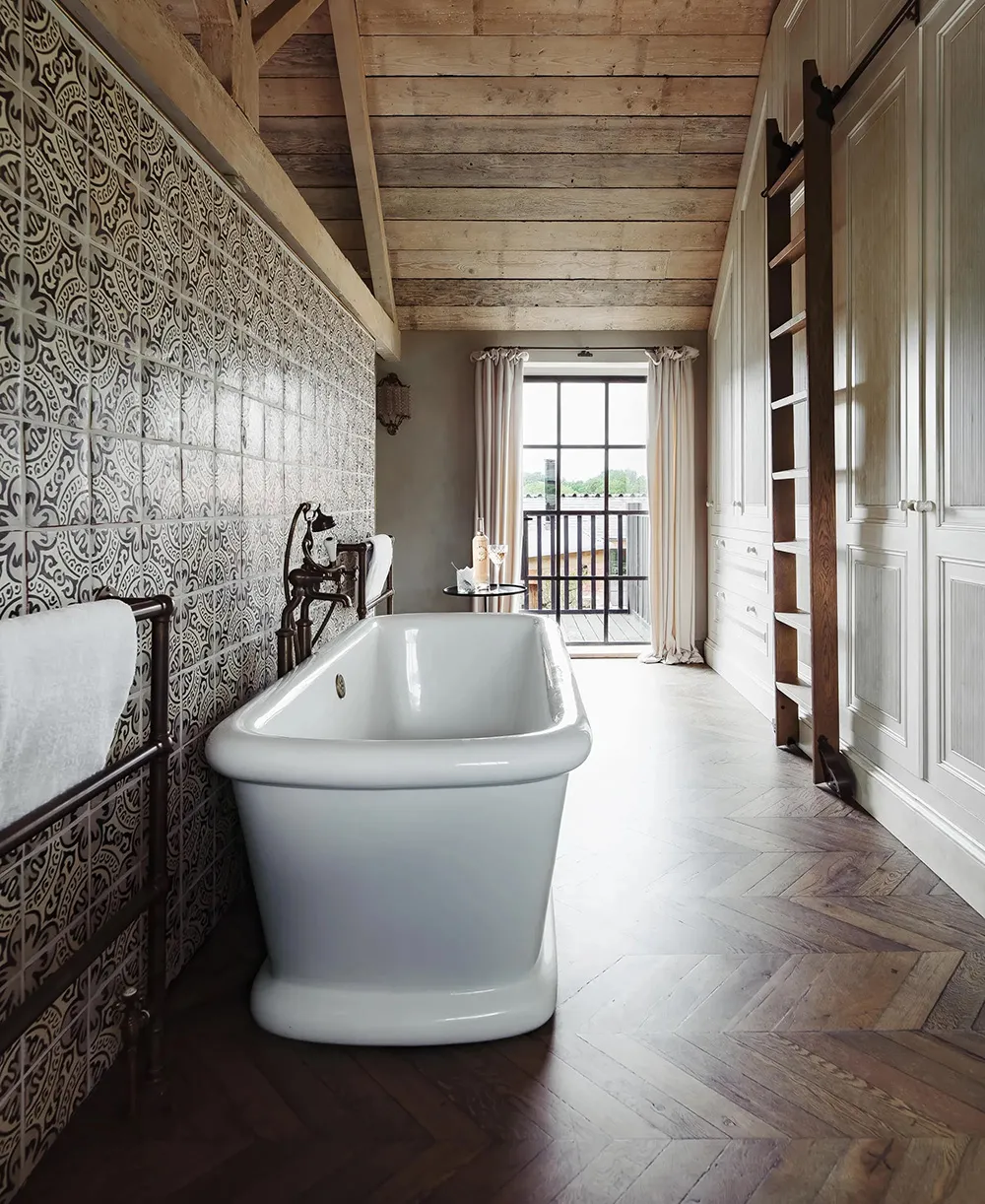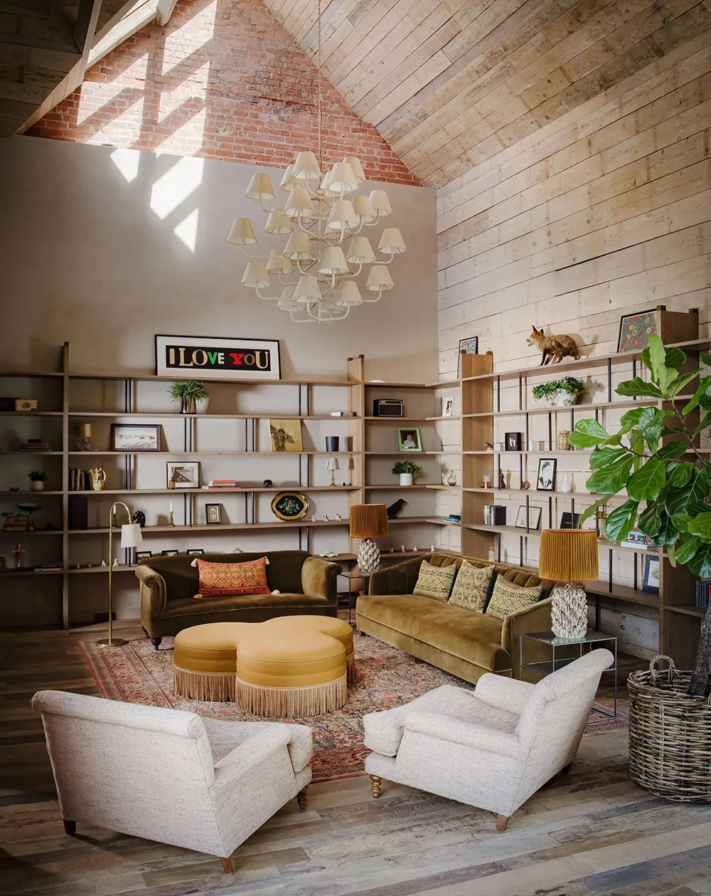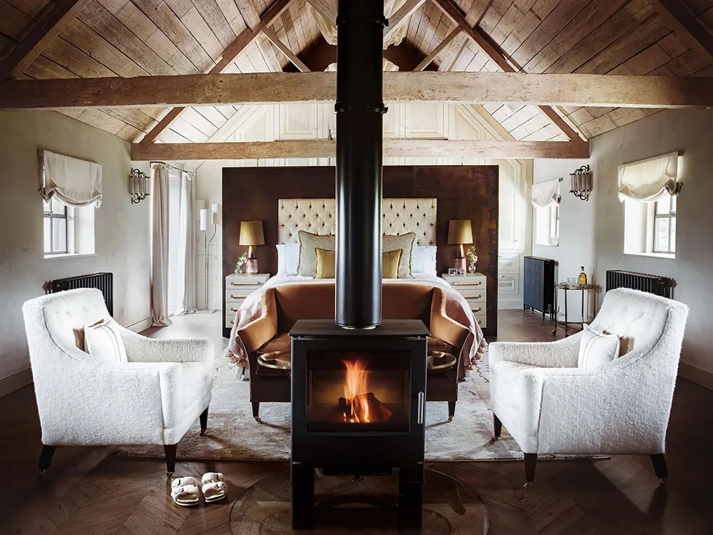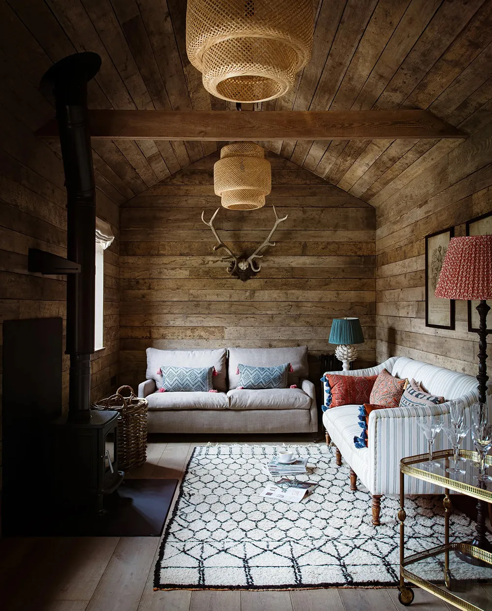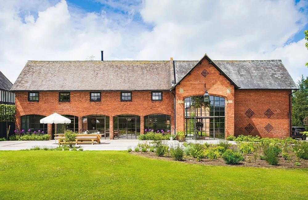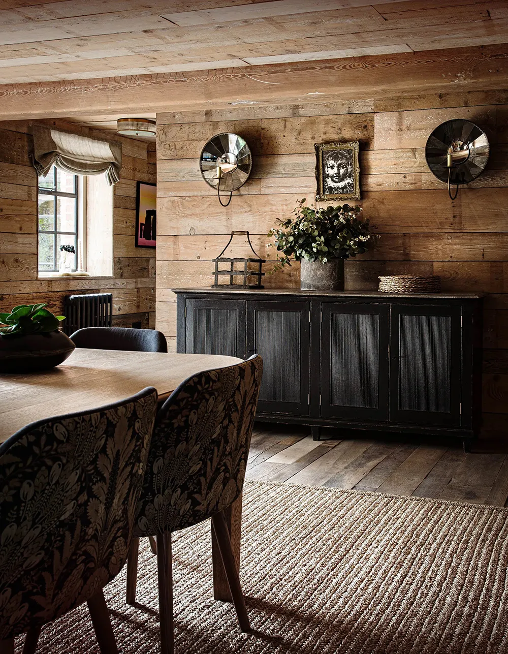 Iluminados y acogedoros interiores de un antiguo granero en Inglaterra
