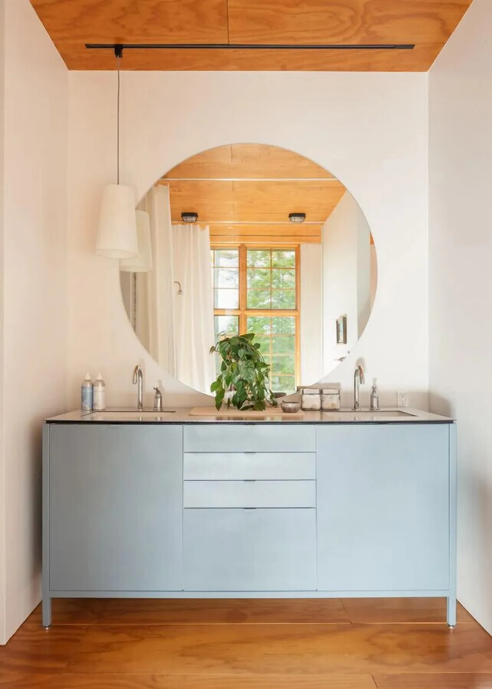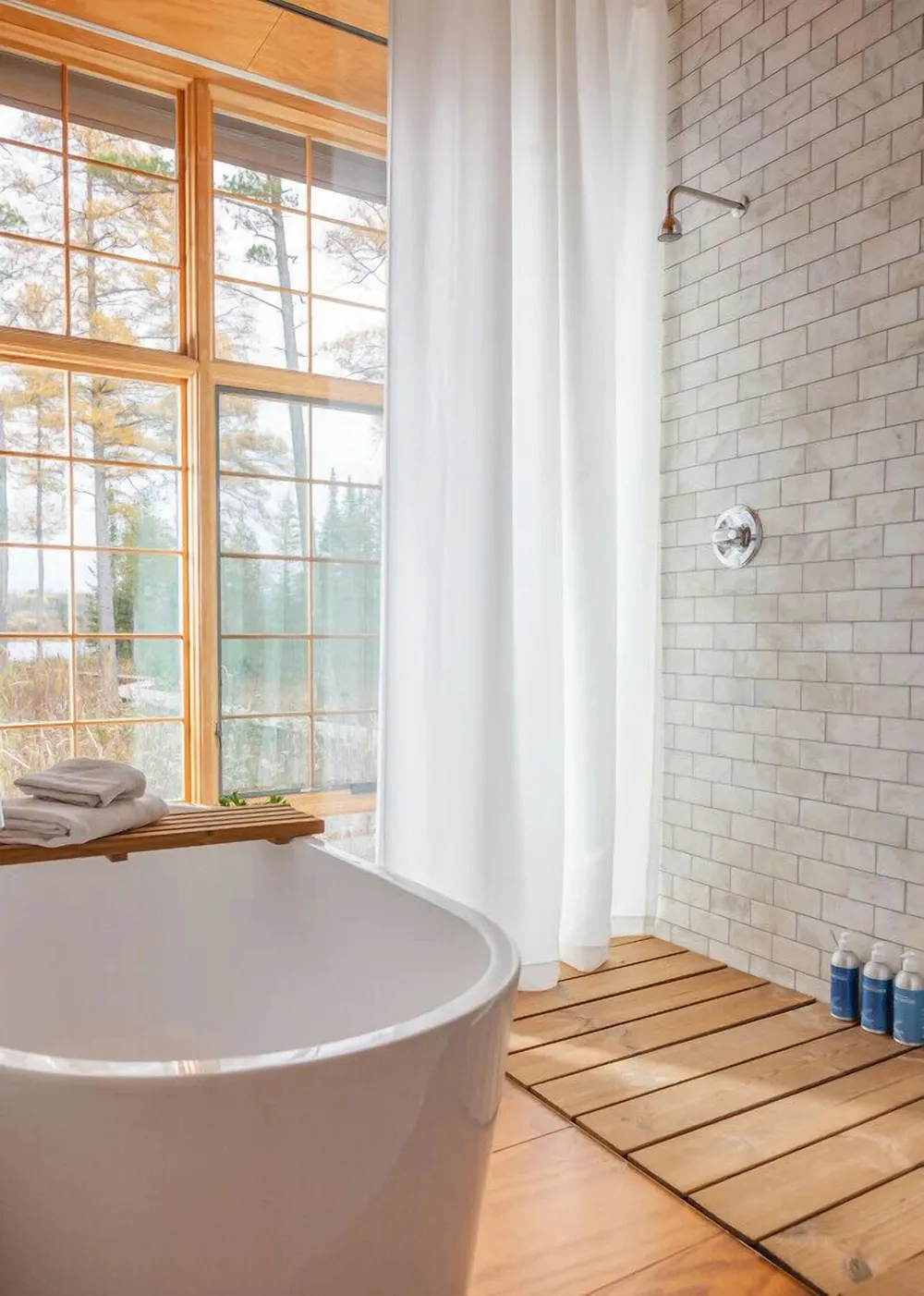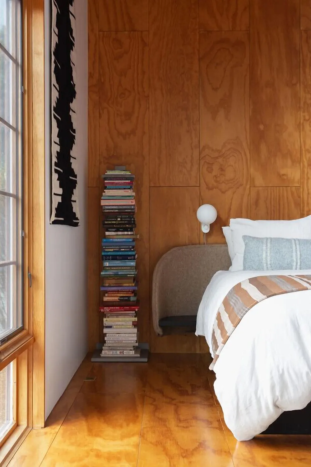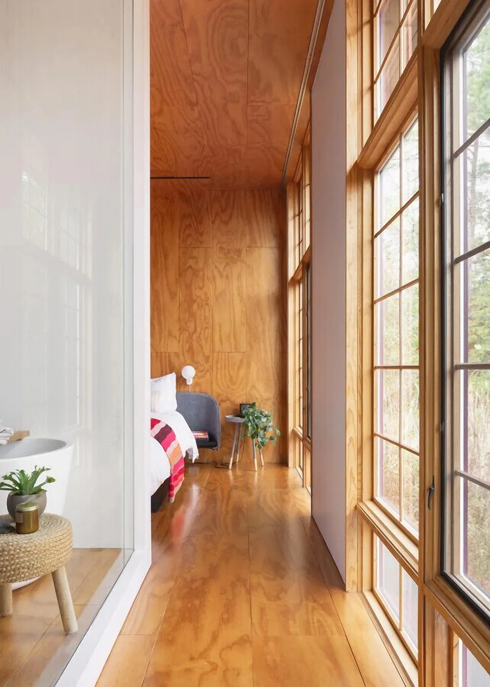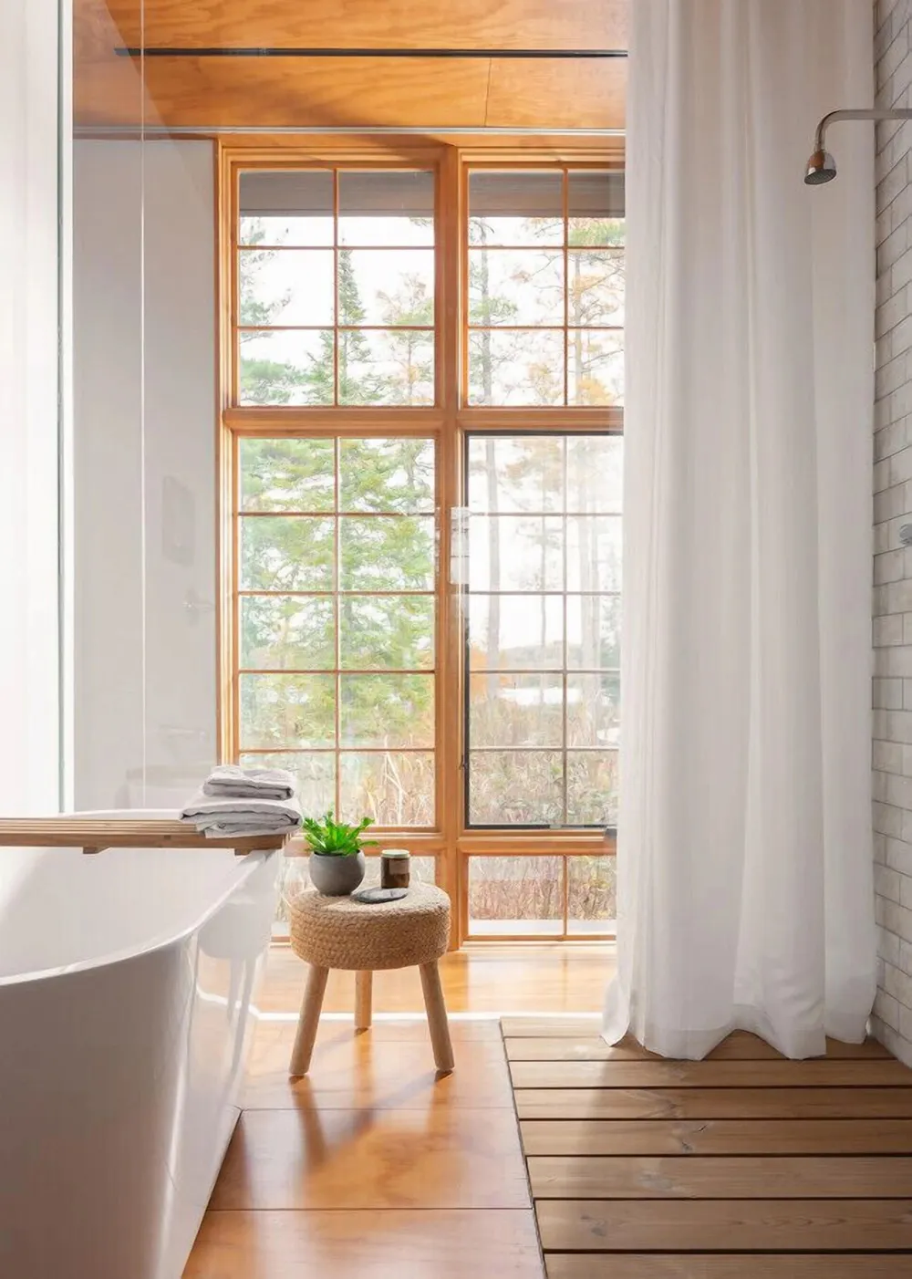 Esta moderna casa de campo con fachada rectangular negra es un oasis del estilo escandinavo en la orilla de un lago en el estado de Michigan.