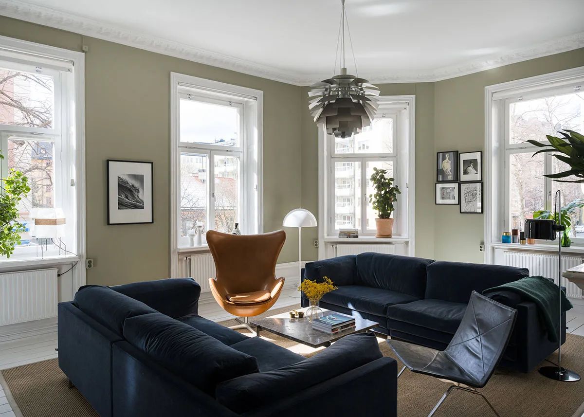 Sala oliva y tablas de surf: apartamento espacioso en Estocolmo