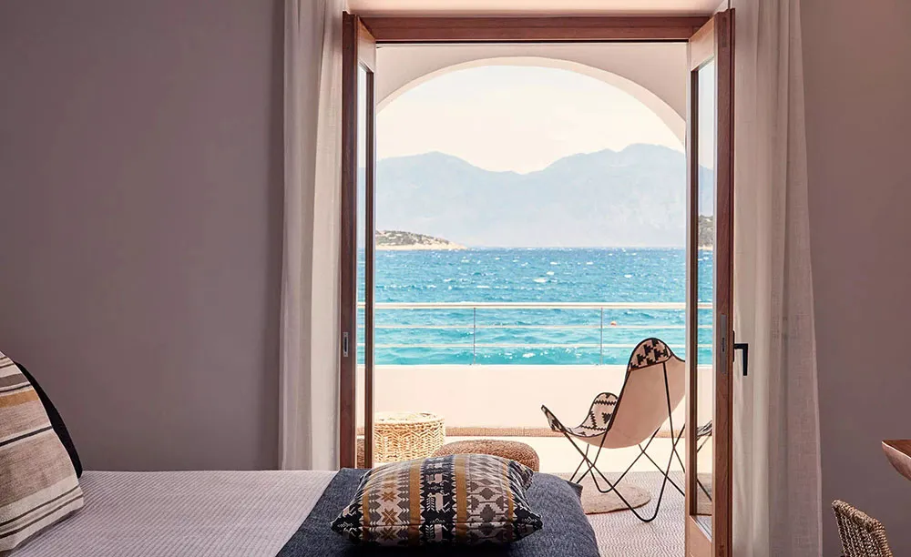El hotel Minos Beach Art Hotel en Creta tiene una concepción muy interesante.