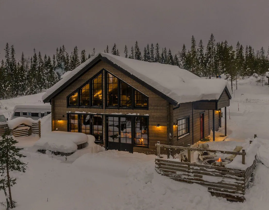 Maravilloso refugio montañoso en Suecia con una hermosa luz vespertina