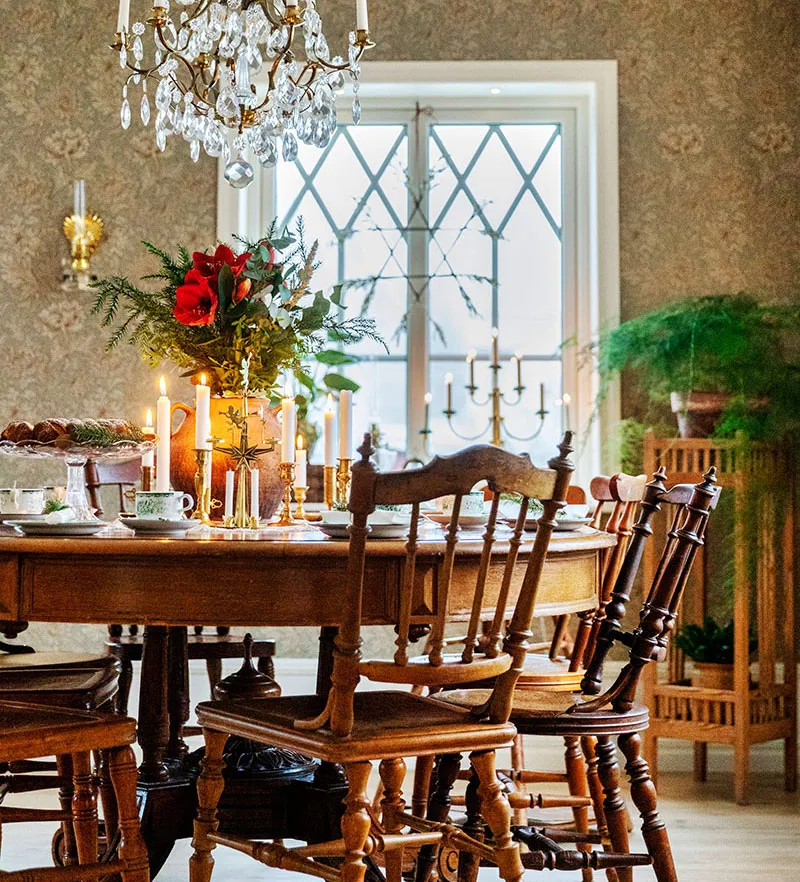 Decoración navideña en estilo retro para casa de los años 1920 en Suecia
