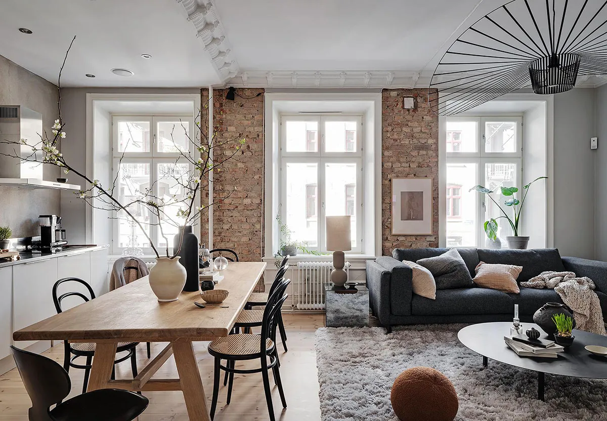 Pared de ladrillo y tonos tierra: apartamento en Gotemburgo (88 m²)