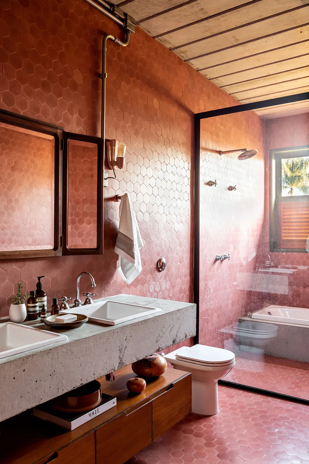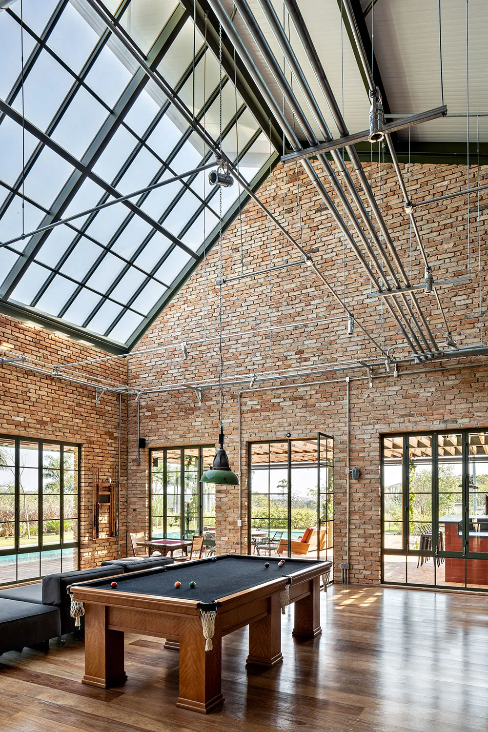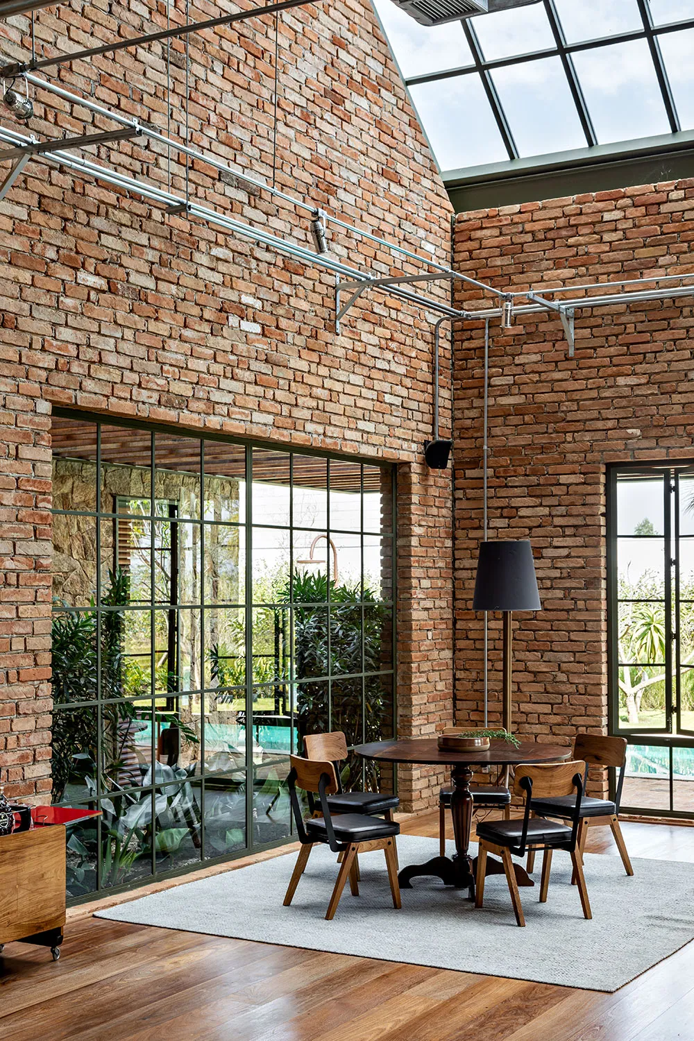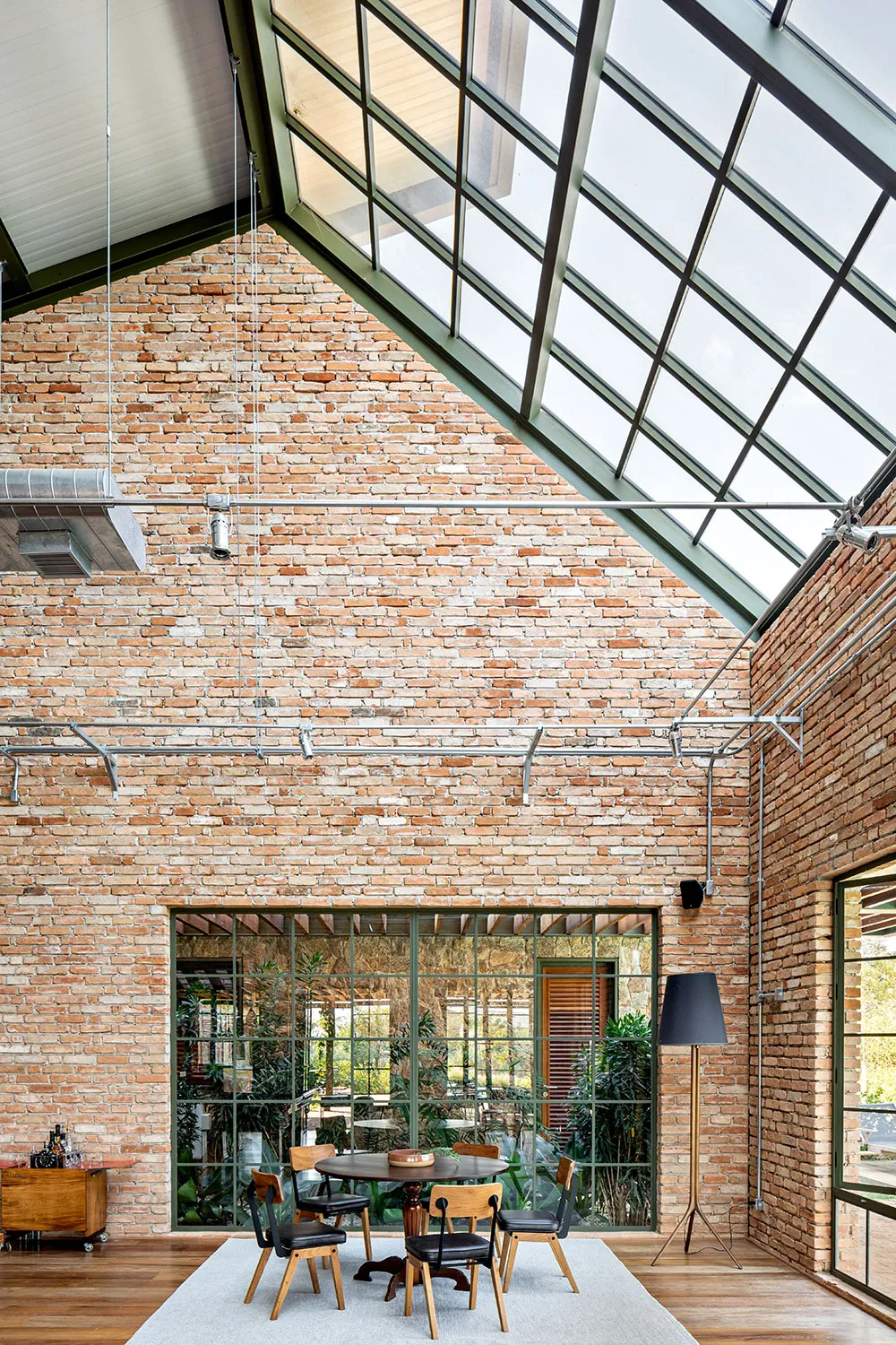 Ladrillo rojo y techo de vidrio: casa en estilo industrial en Brasil