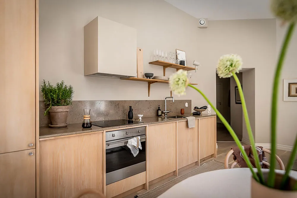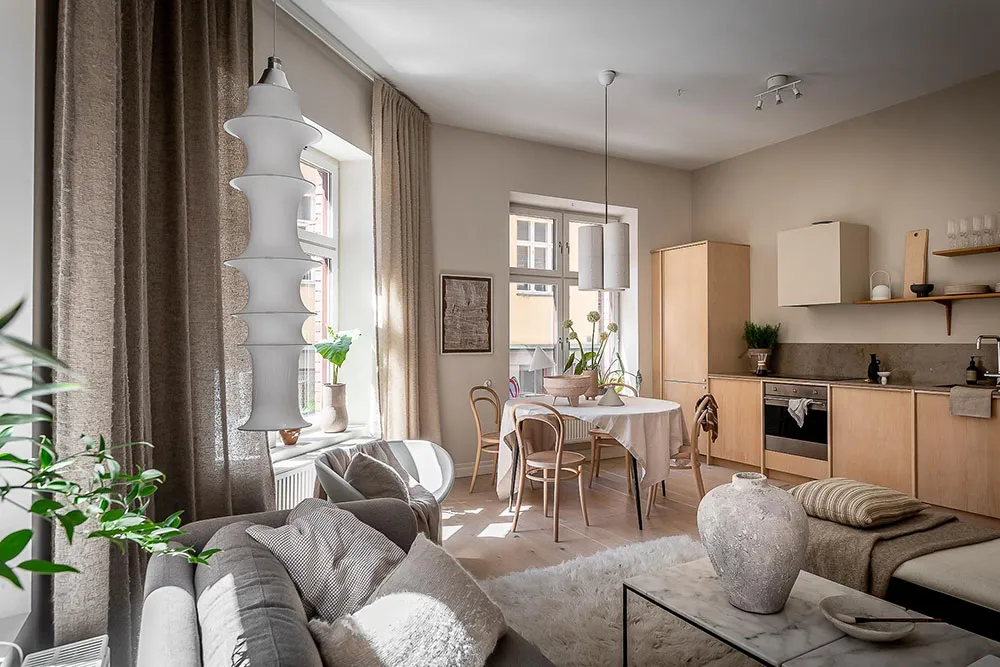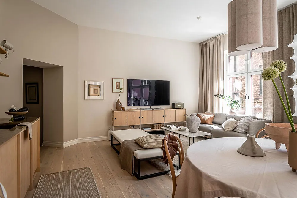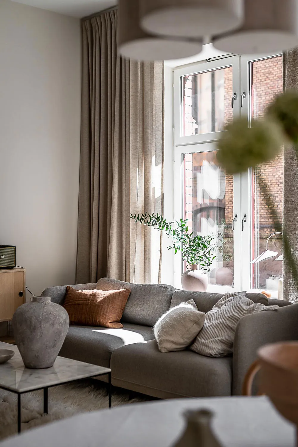 Interior cálido en tonos beige-gris en Gotemburgo (66 m²)