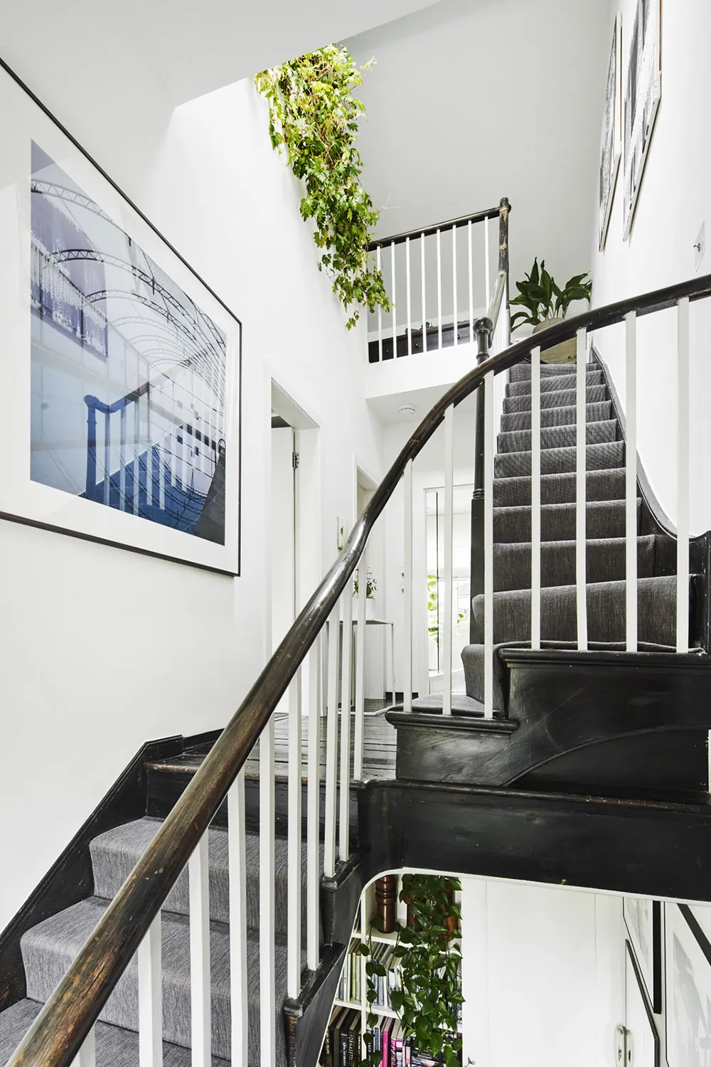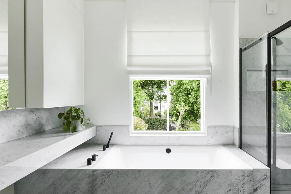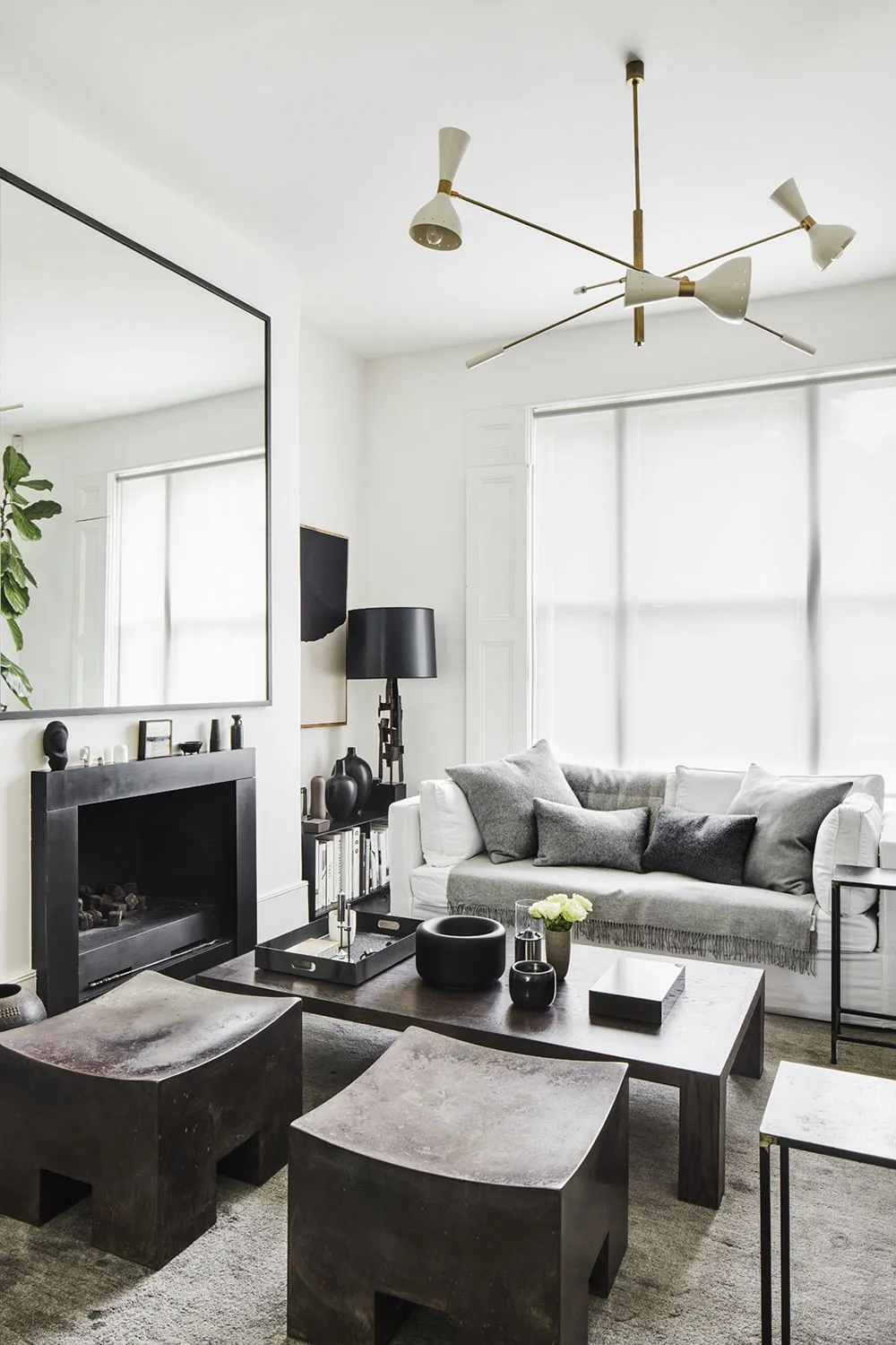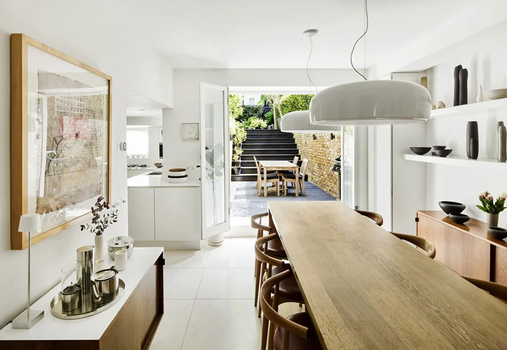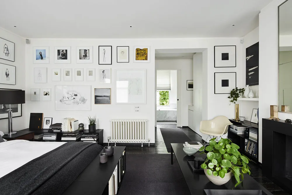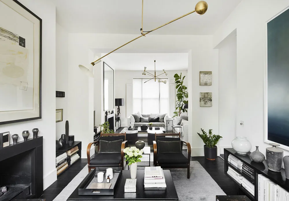 Estilo moderno y elegante en el interior blanco y negro de un townhouse victoriano en Londres