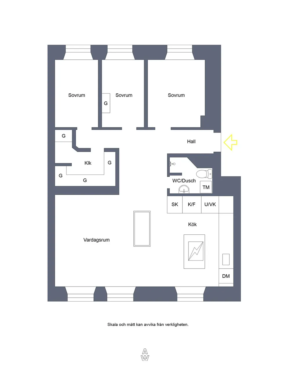 Molduras y contrastes: estilo de apartamento en Estocolmo (61 m²)