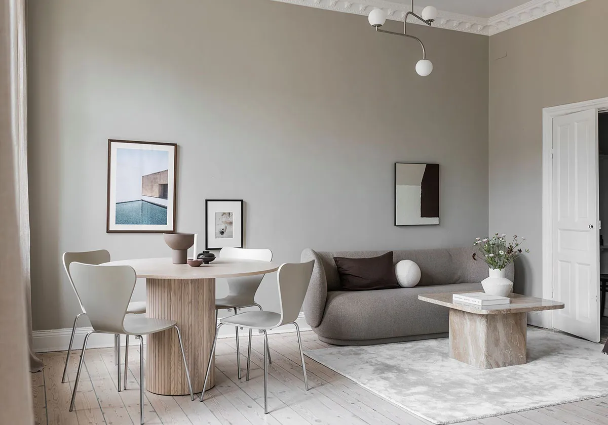 Tono pastel cálido: un interior moderno agradable en Estocolmo (60 m²)