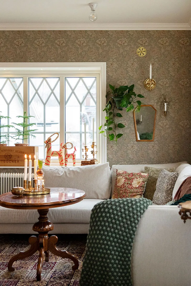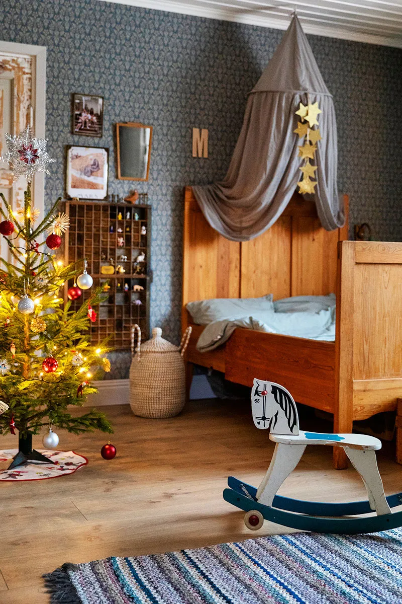 Decoración navideña en estilo retro para casa de los años 1920 en Suecia