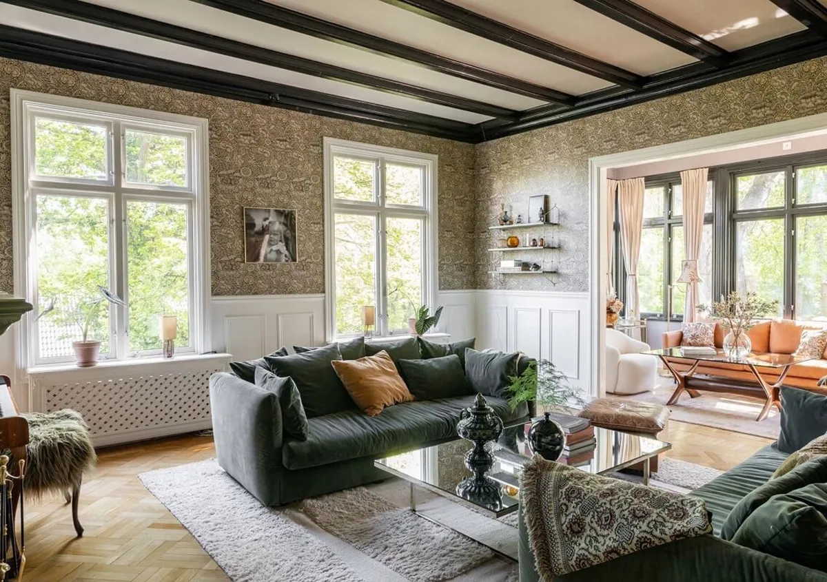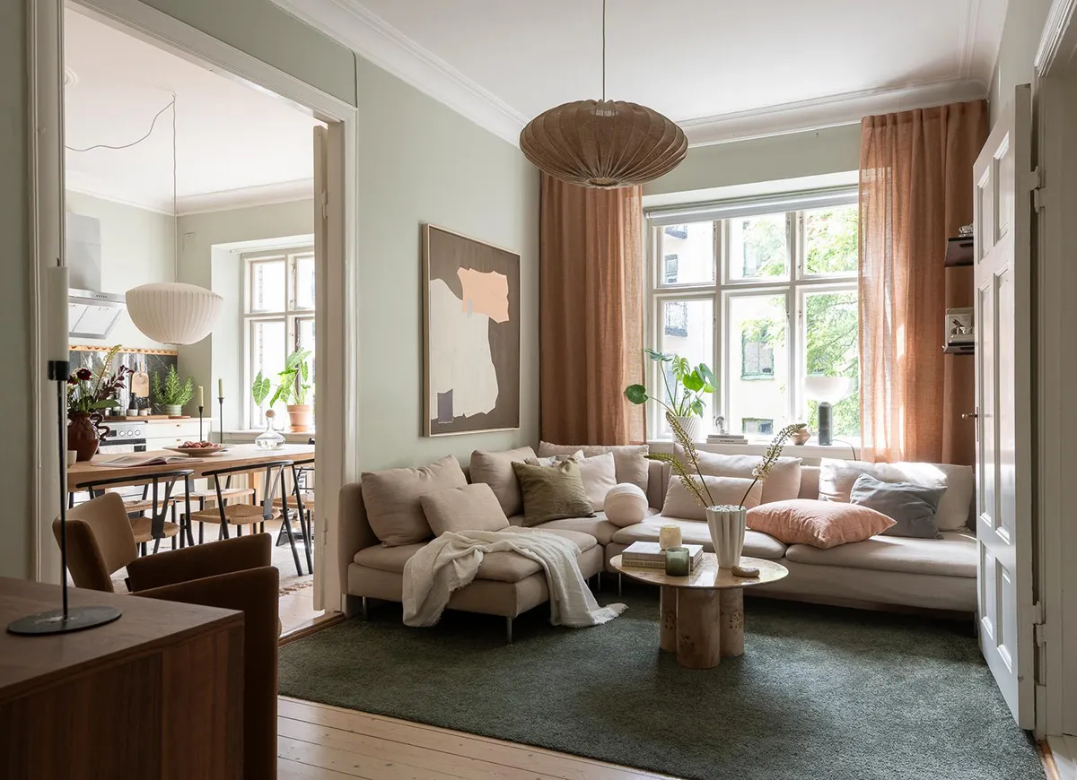 Tonos verdes y acentos cálidos: apartamento en Suecia (87 m²)