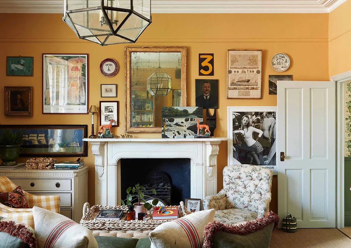 Interior acogedor de un diseñador inglés con una gran cantidad de hermoso decorado