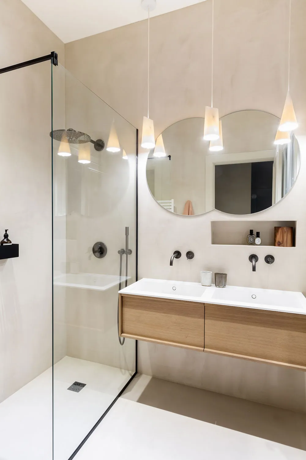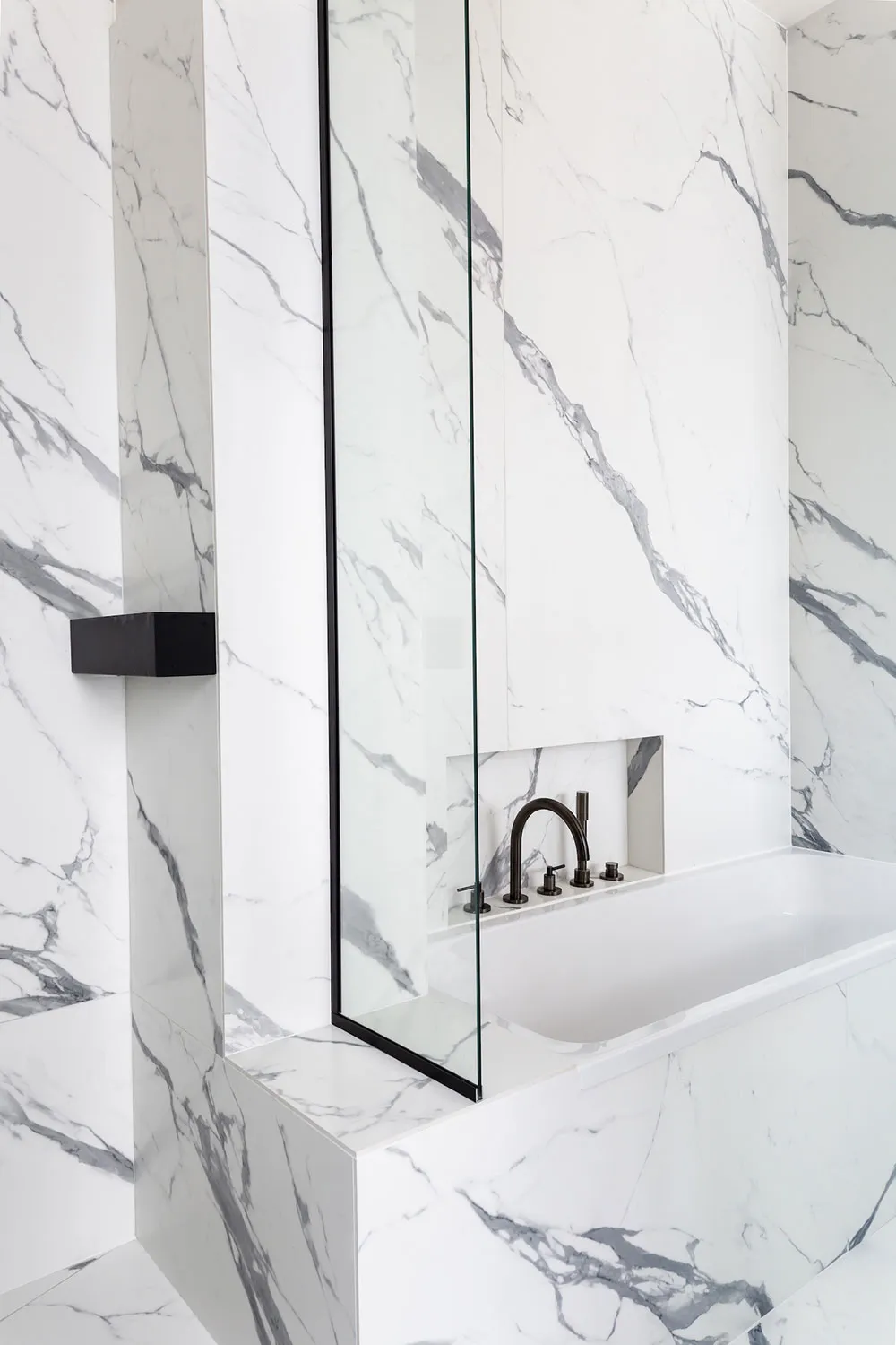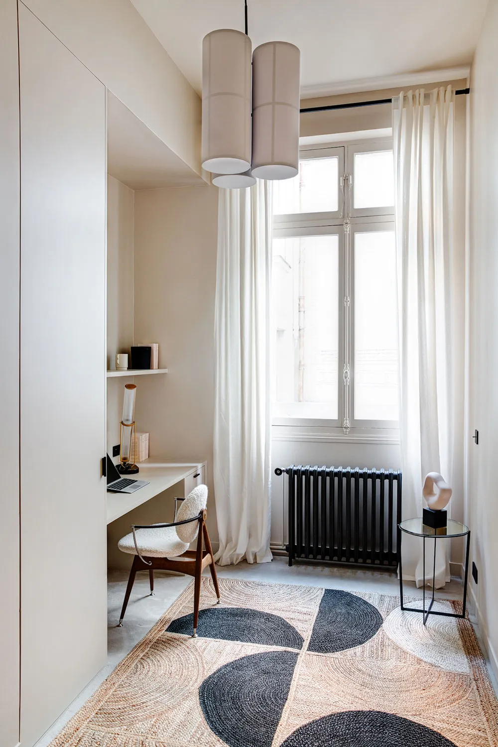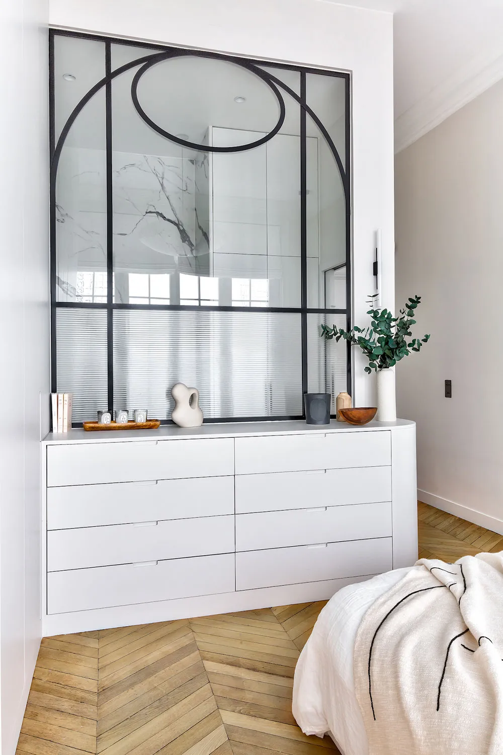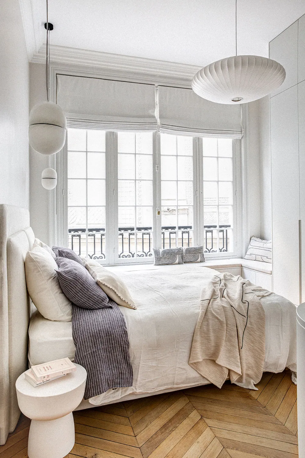 La diseñadora Karolin Andreoni tomó una decisión bastante atrevida para el diseño de estos apartamentos en París: decorar las paredes del interior con paneles de madera maciza.