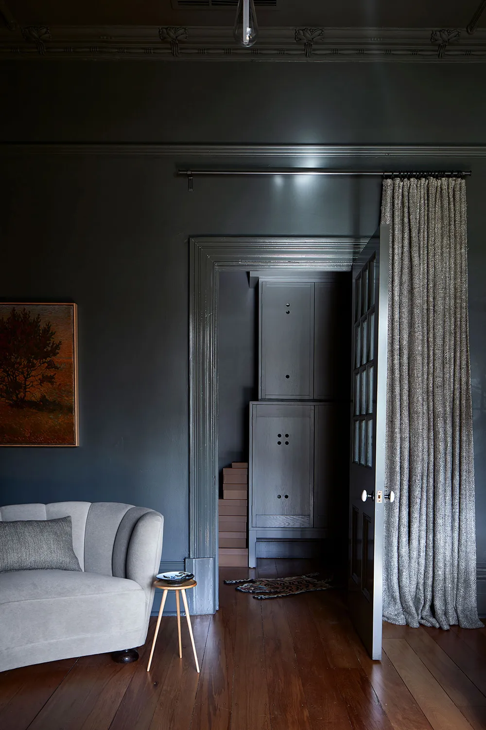 Pinturas oscuras intensas en el diseño de casa del diseñador en Melbourne