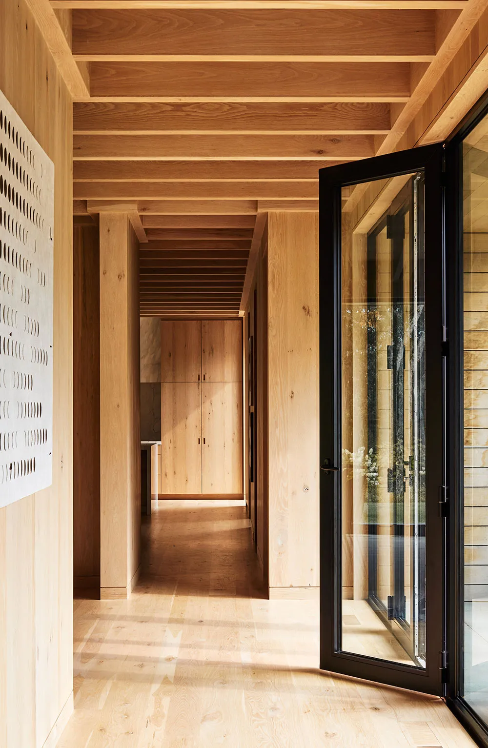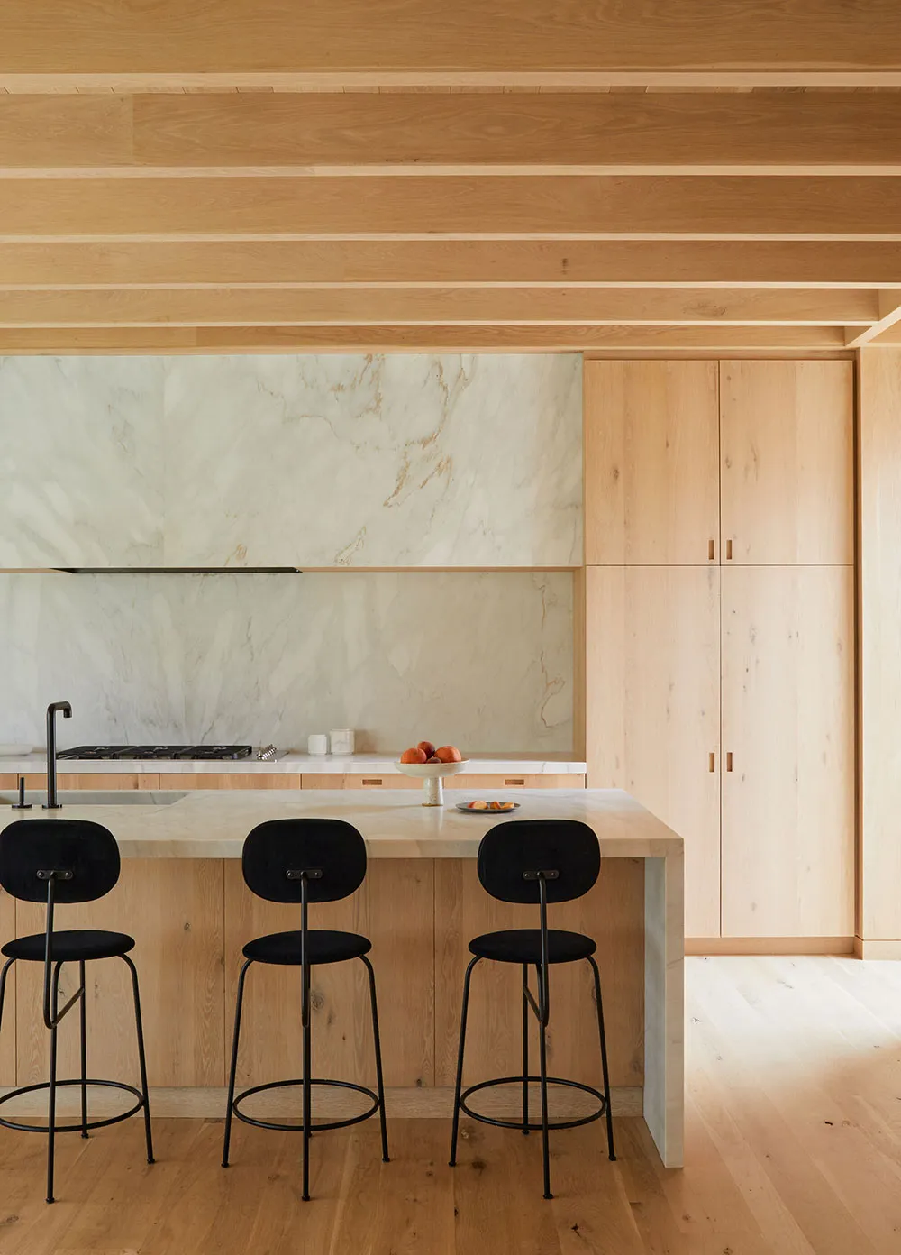 A pesar de que el interior de esta casa en San Francisco está prácticamente completamente hecho de madera natural, los diseñadores lograron evitar la sensación de chalet o vivienda rural.
