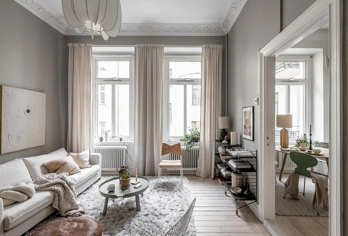 Diseño de interiores económicos pero agradables para una pequeña vivienda tipo estudio en Suecia (36 m²)