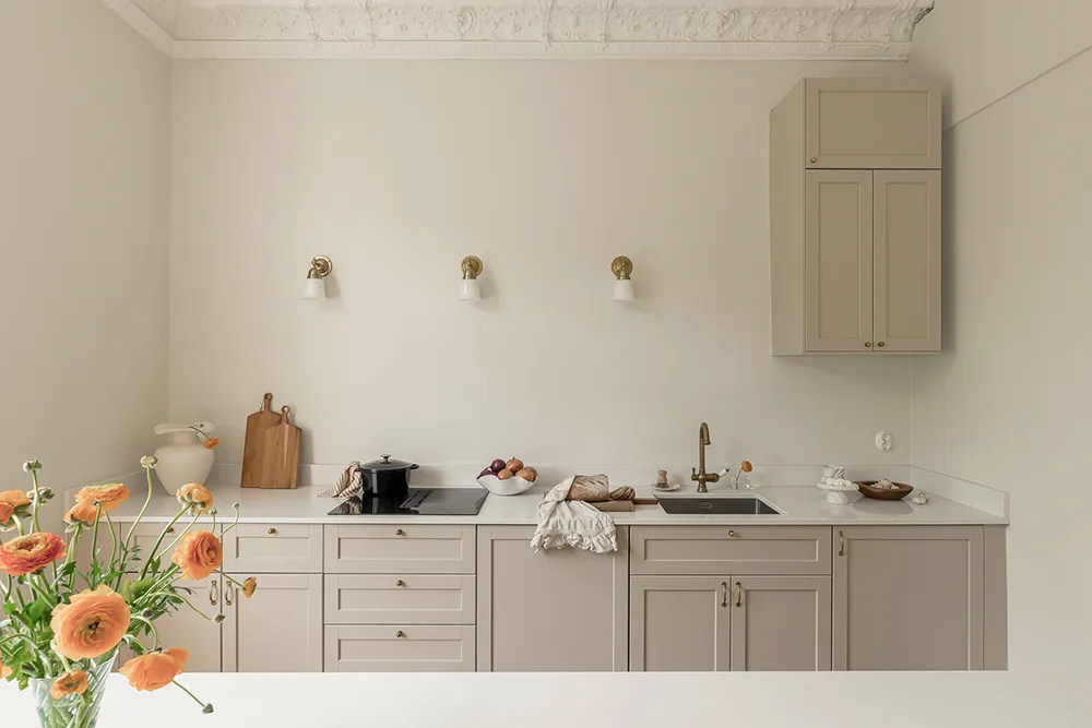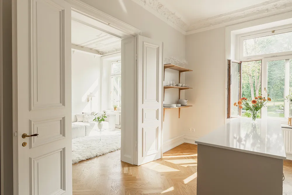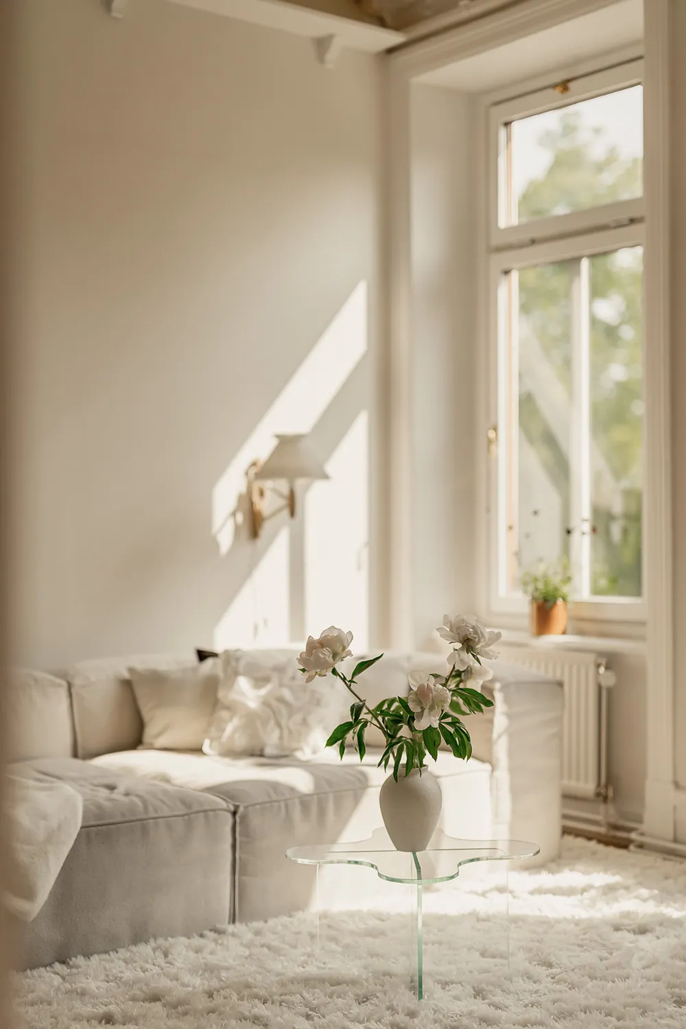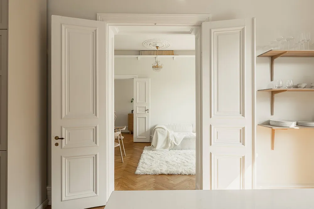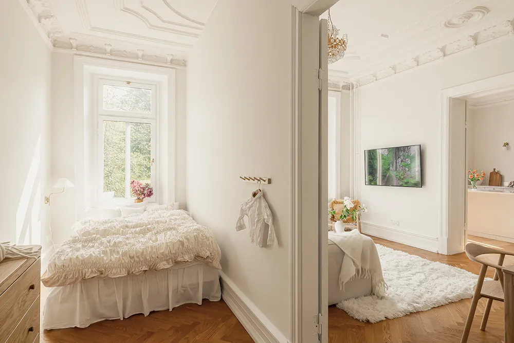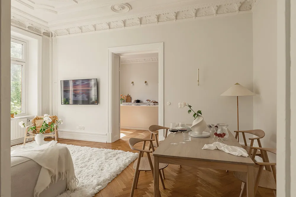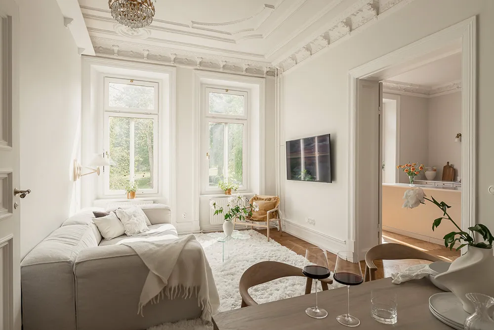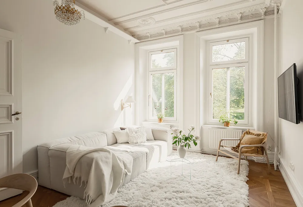Hermoso interior blanco con estucado y decoración minimalista (78 m²)