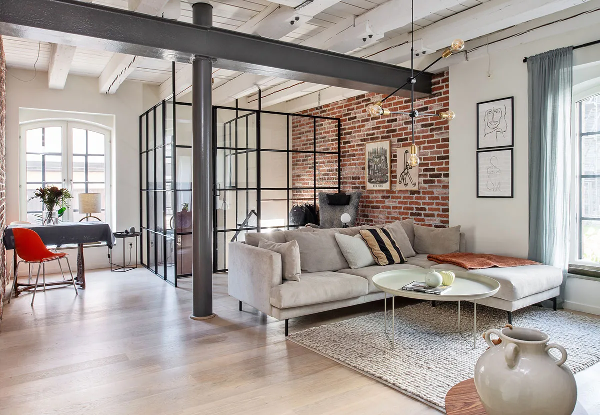 Pequeño loft en el primer piso de una antigua fábrica en Malmö (67 m²)