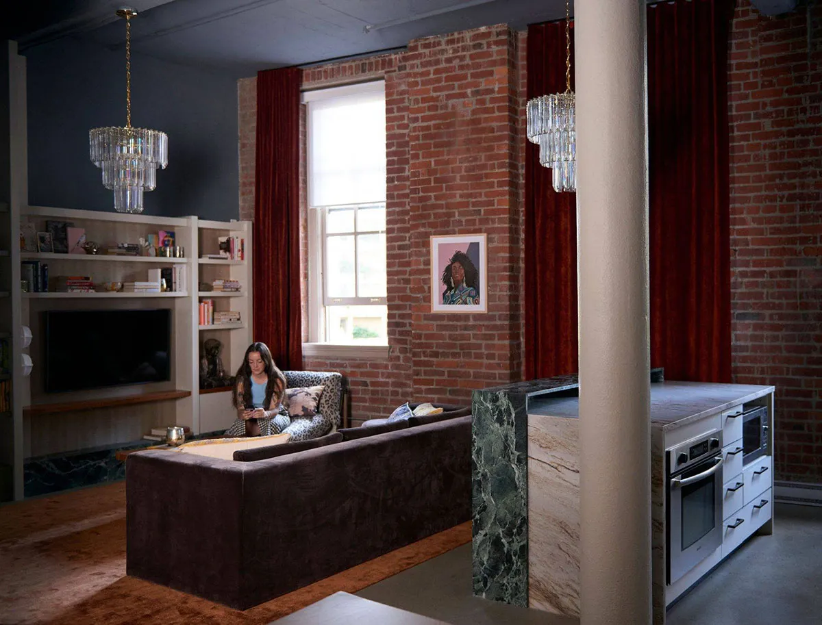 Ricos matices y cristal en el fondo de ladrillo: loft en Canadá