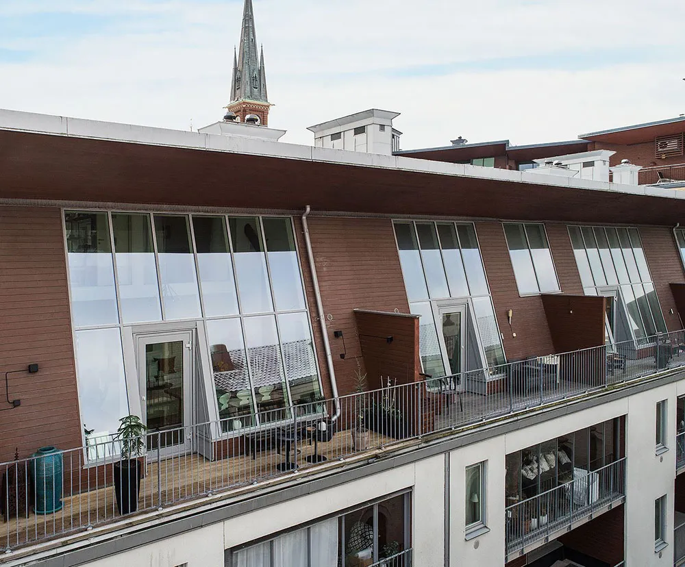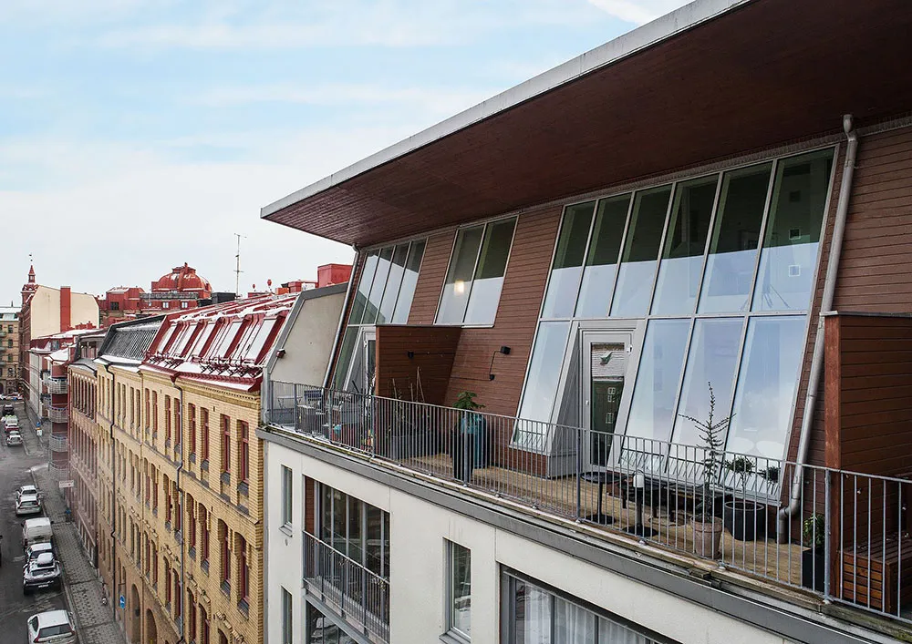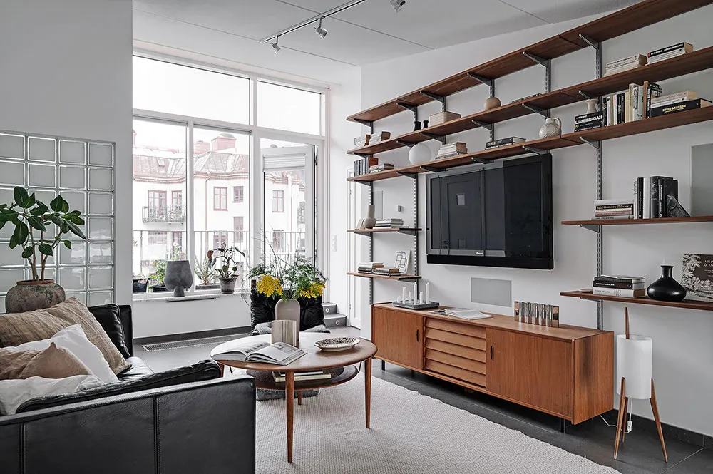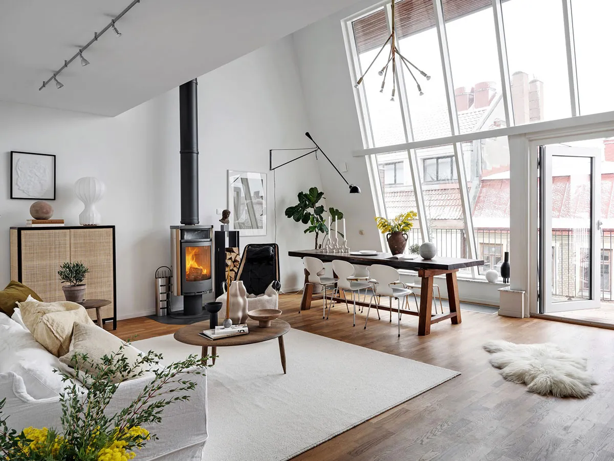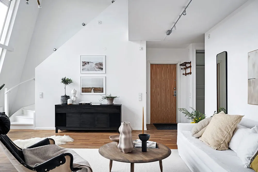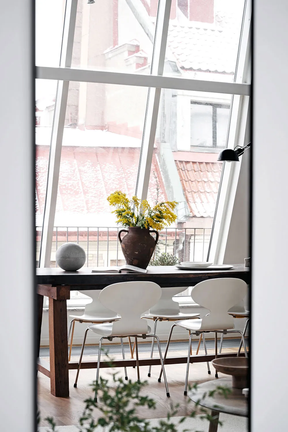 Por su configuración espacial, este dúplex en Gotemburgo recuerda a un estudio de artista; ya habíamos visto este tipo de apartamentos creativos en París y otras ciudades de Europa antigua.