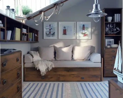 L'avantage d'acheter ce lit est que vous obtenez non seulement un cadre en bois, mais aussi un matelas et des coussins décoratifs. Beaucoup de fabricants vendent seulement la première composante, tandis que les matelas et les coussins sont vendus séparément.