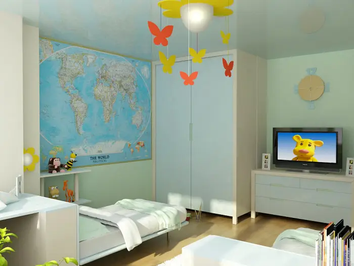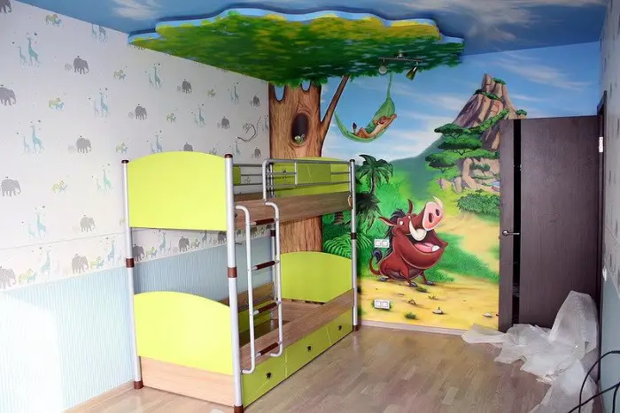 L'intégration d'éléments supplémentaires d'embellissement dans une chambre à coucher pour enfants — un personnage favori, une série animée préférée, etc. — peut faciliter la recherche d'une solution originale de design. Pour les enfants, cela constitue une raison pour revenir à leur chambre préférée, à leurs amis préférés, avec lesquels ils auront certainement des relations et des secrets.