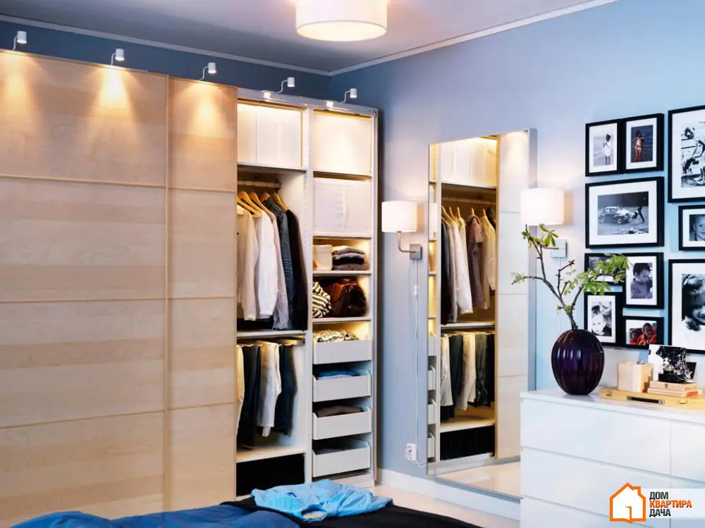 Si vous n'avez pas une chambre à vêtements séparée et que les armoires de type dressing remplissent la fonction de rangement, utilisez l'éclairage intérieur qui s'allume automatiquement à l'ouverture des portes. Cela est très pratique, surtout en hiver quand il fait encore sombre le matin et que vous ne voulez pas réveiller les autres membres de la famille par un éclairage trop vif.