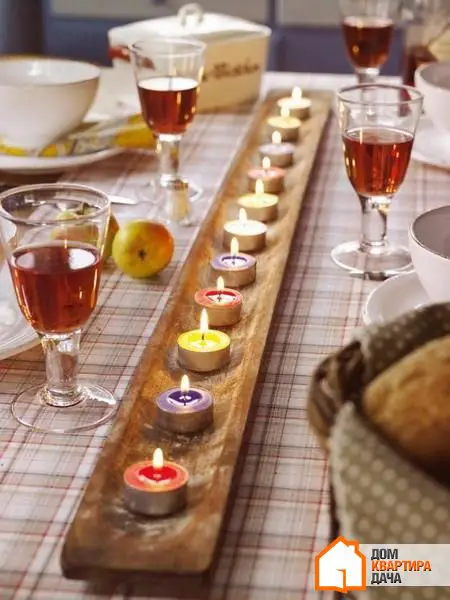 Il est possible de diluer le minimalisme lumineux dans la salle à manger grâce aux luminaires muraux ou à l'éclairage des armoires. Pour les adeptes du confort et de l'atmosphère familiale, cela reste bien sûr les bougies. Si vous avez des enfants et que vous vous inquiétez de la sécurité, utilisez des bougies LED en cire naturelle avec une flamme naturelle.