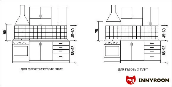 Dans une plage de 60 à 80 cm. Pour le gaz — optimal à 75 cm. Pour les plaques électriques — 65 cm.