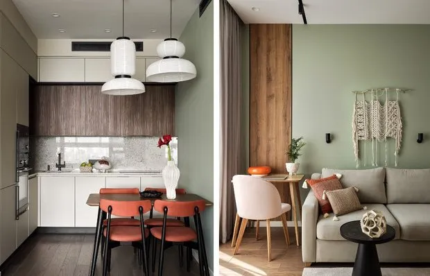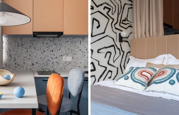 Le designer Galina Ovchinnikova a ressuscité ce deux-pièces abandonné et effrayant dans une khrouchtchevka. L’appartement a été hérité par les propriétaires et était dans un état affreux. Ici, la cuisine était très petite, le WC séparé et étroit, deux chambres. Le designer devait créer une disposition pratique et ergonomique, organiser un intérieur neutre mais coloré et mémorable.