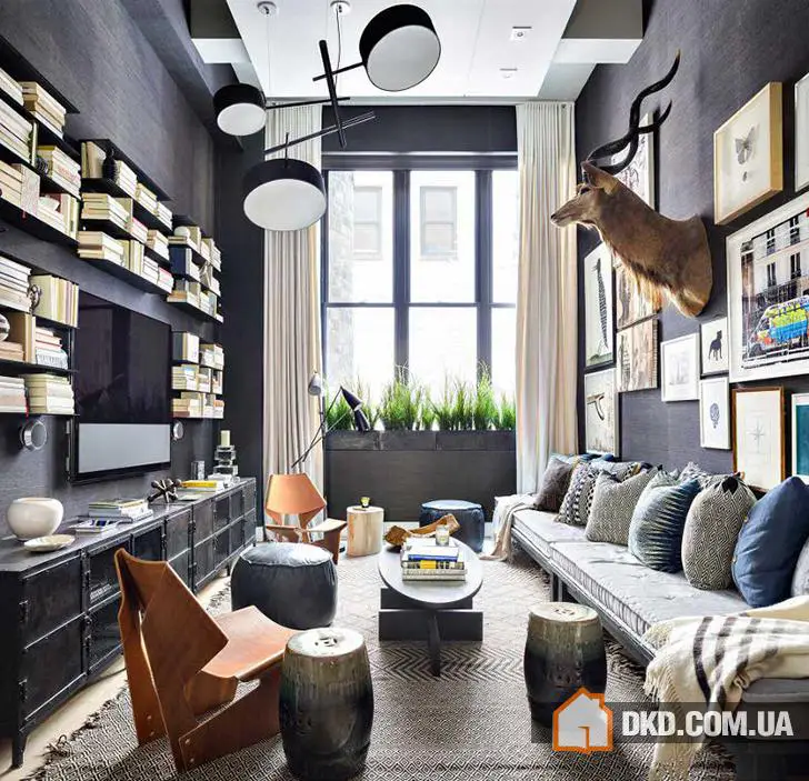 Les architectes de TG-STUDIO ont combiné deux appartements séparés au deuxième étage d'une maison en briques construite dans les années 1880 au centre de Londres. Le projet Queens Gate comprend quatre chambres à coucher avec salles de bain et un vaste salon commun, formé par la fusion de trois pièces. Les murs et plafonds en béton froid s'associent aux planchers en bois chaud, à la décoration en marbre de la salle de bain des propriétaires et à un mobilier contemporain qui ne surcharge pas l'espace. Les occupants de ces appartements voyagent souvent en Afrique, donc il était essentiel que l'atmosphère de la maison soit chaleureuse et que l'intérieur correspondît au bâtiment classique. De plus, possédant un réseau de magasins de meubles design en Afrique, la propriétaire sélectionnait elle-même les éléments décoratifs.