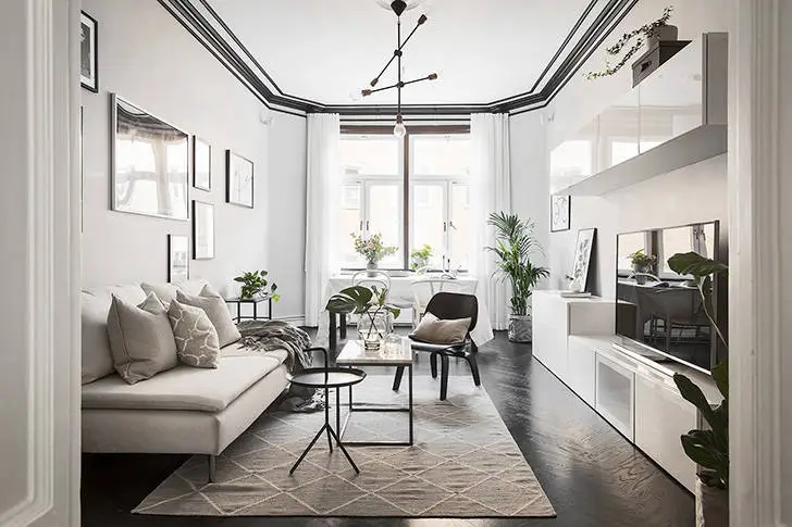 Comment les rideaux foncés ont ajouté une touche originale à l'intérieur d'une maison suédoise (50 m²)