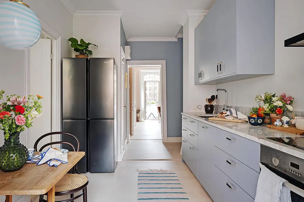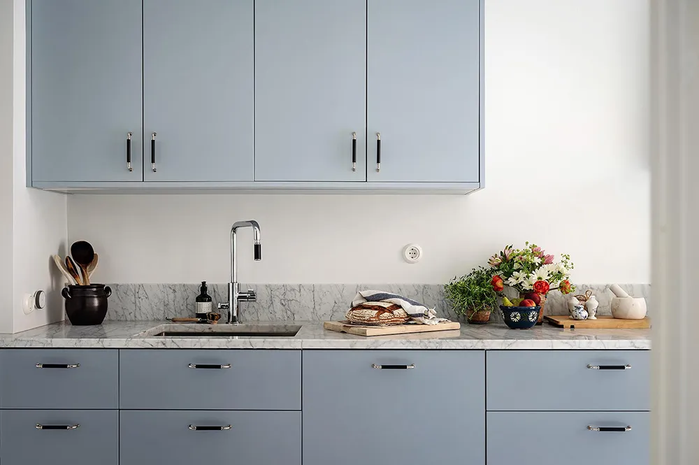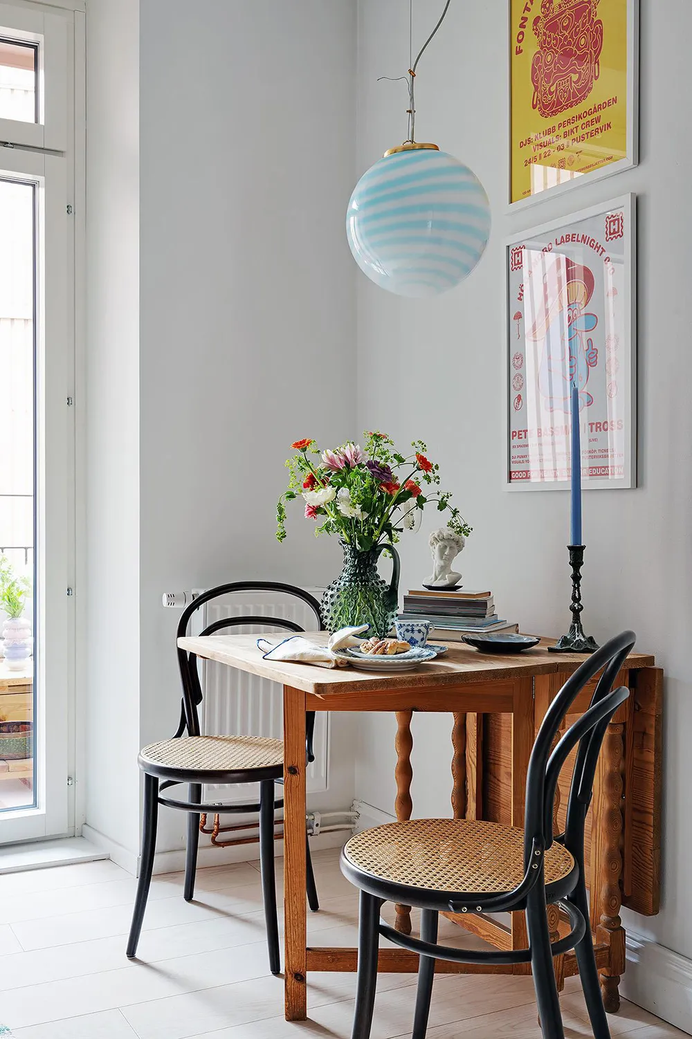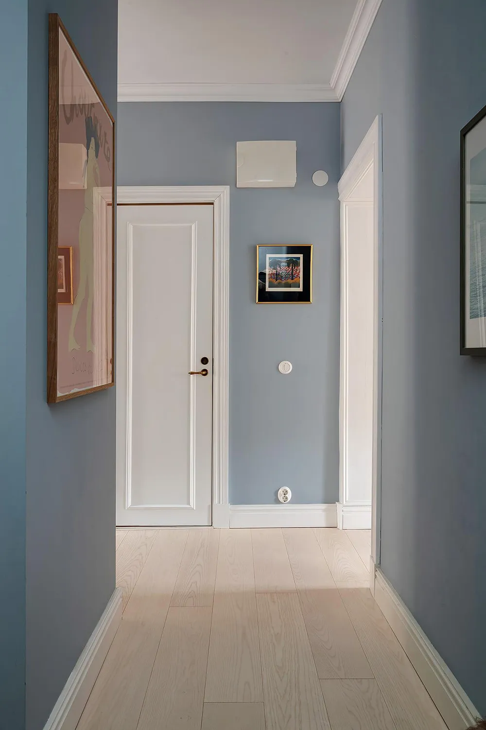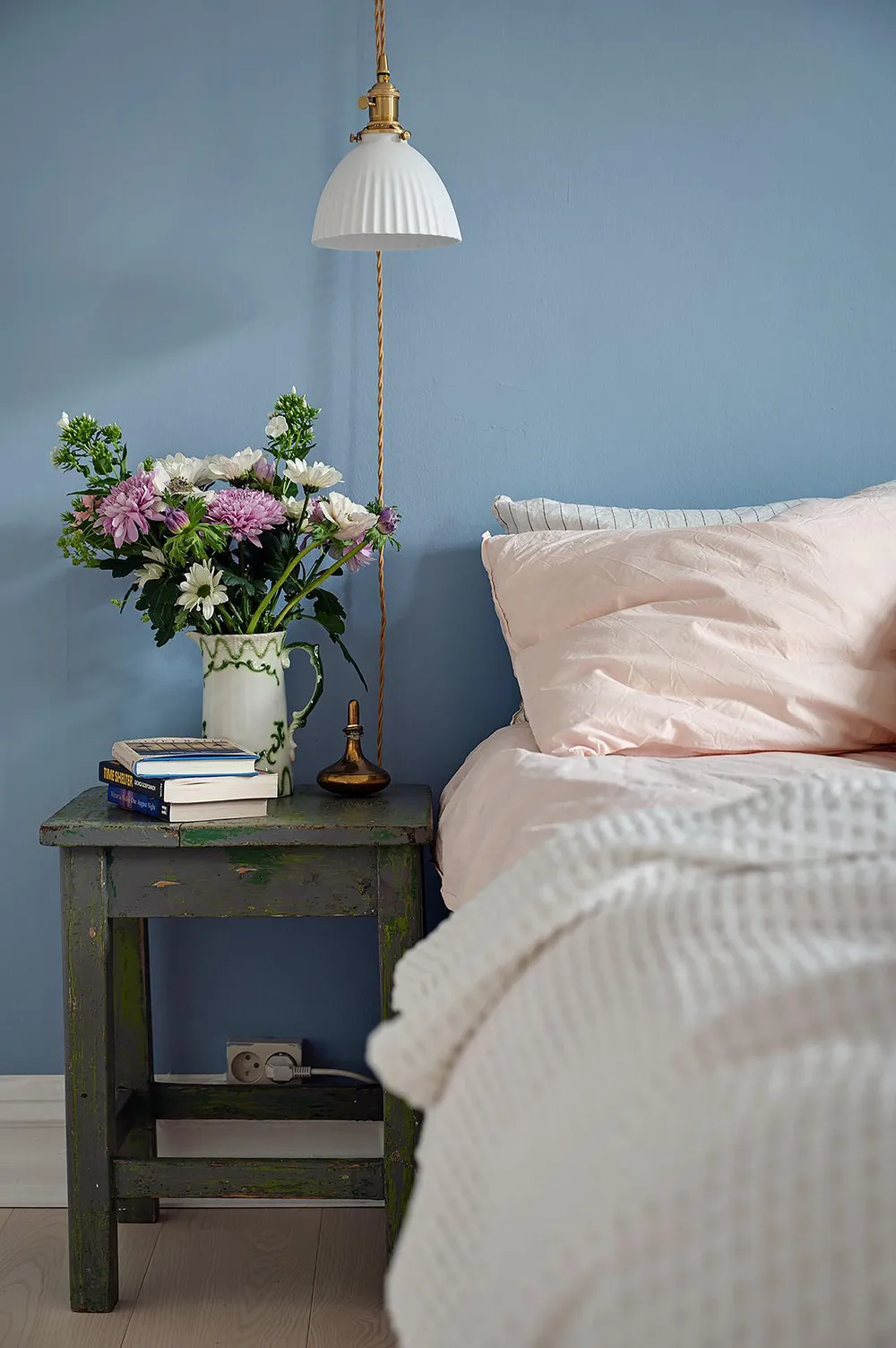 Rouge et bleu pâle : appartement pastel en Suède (77 m²)