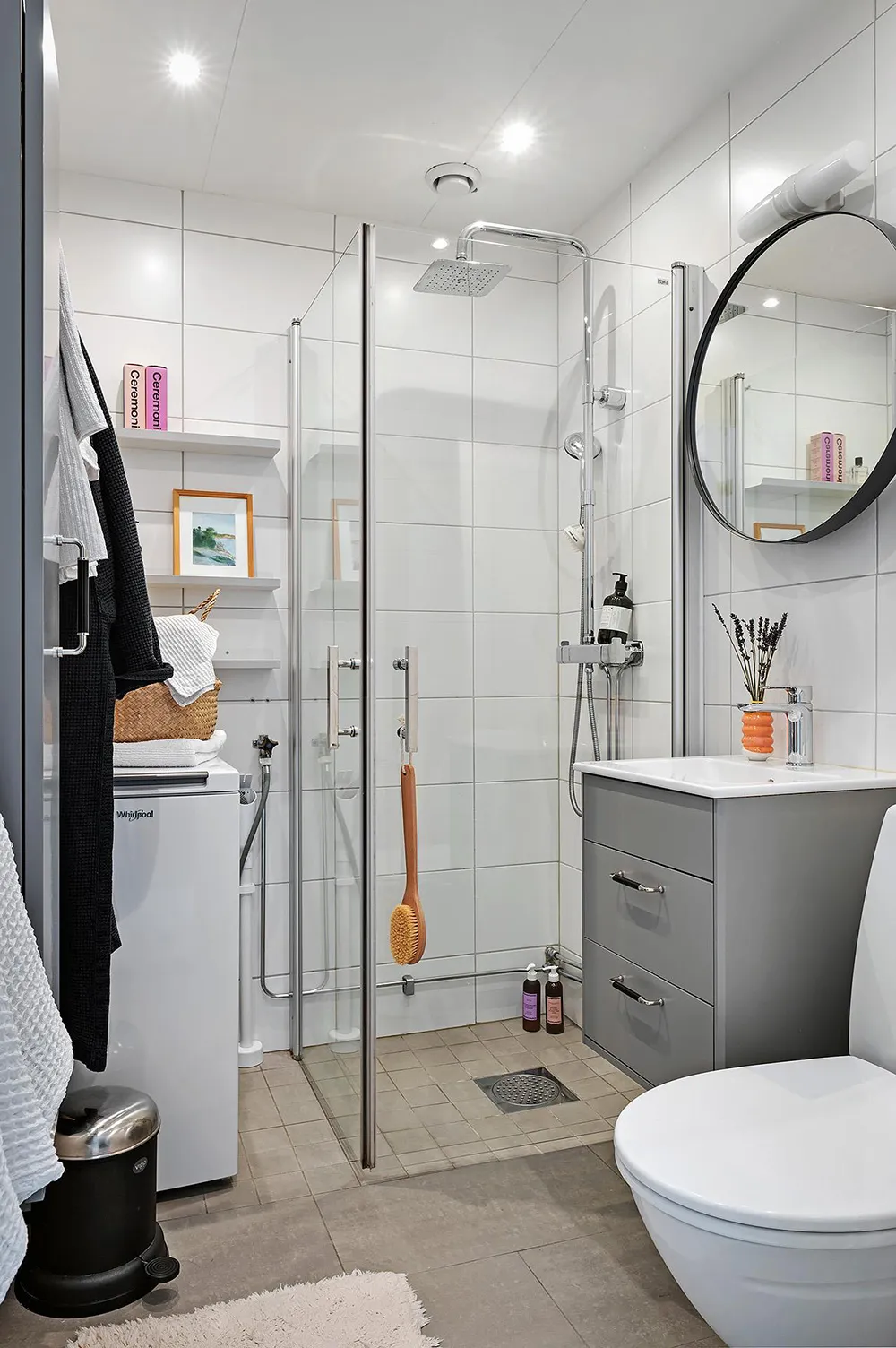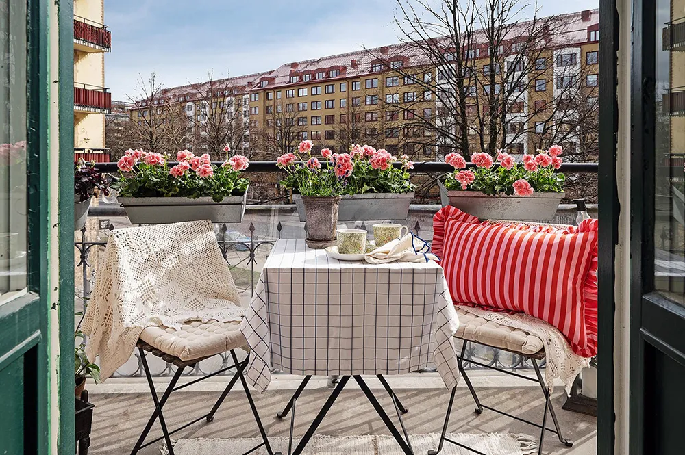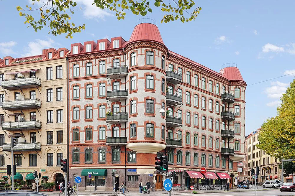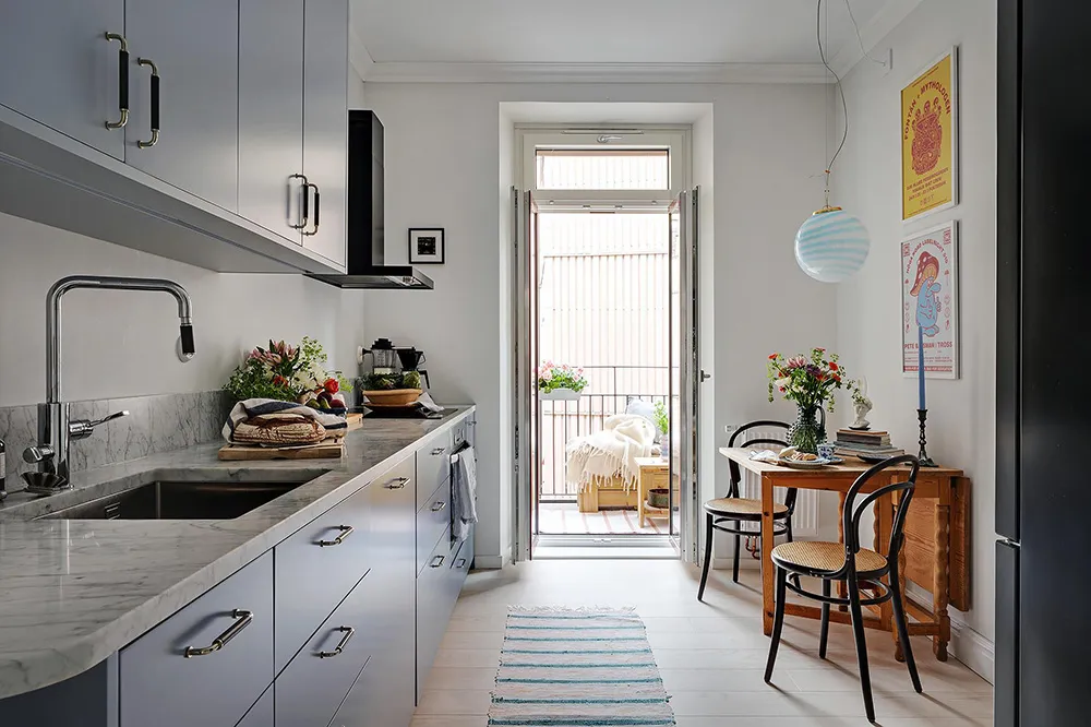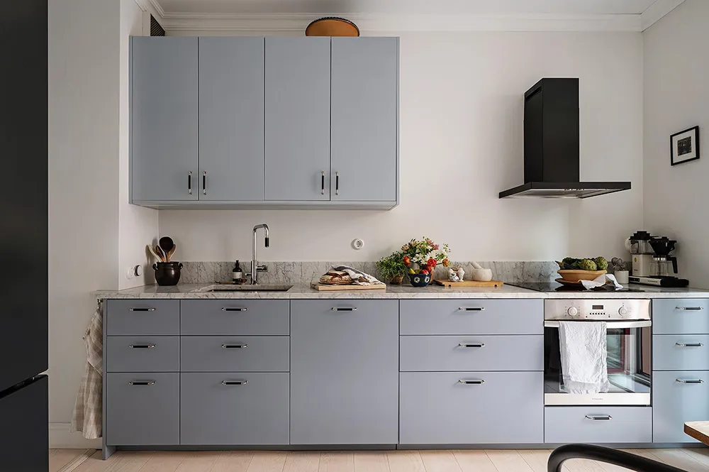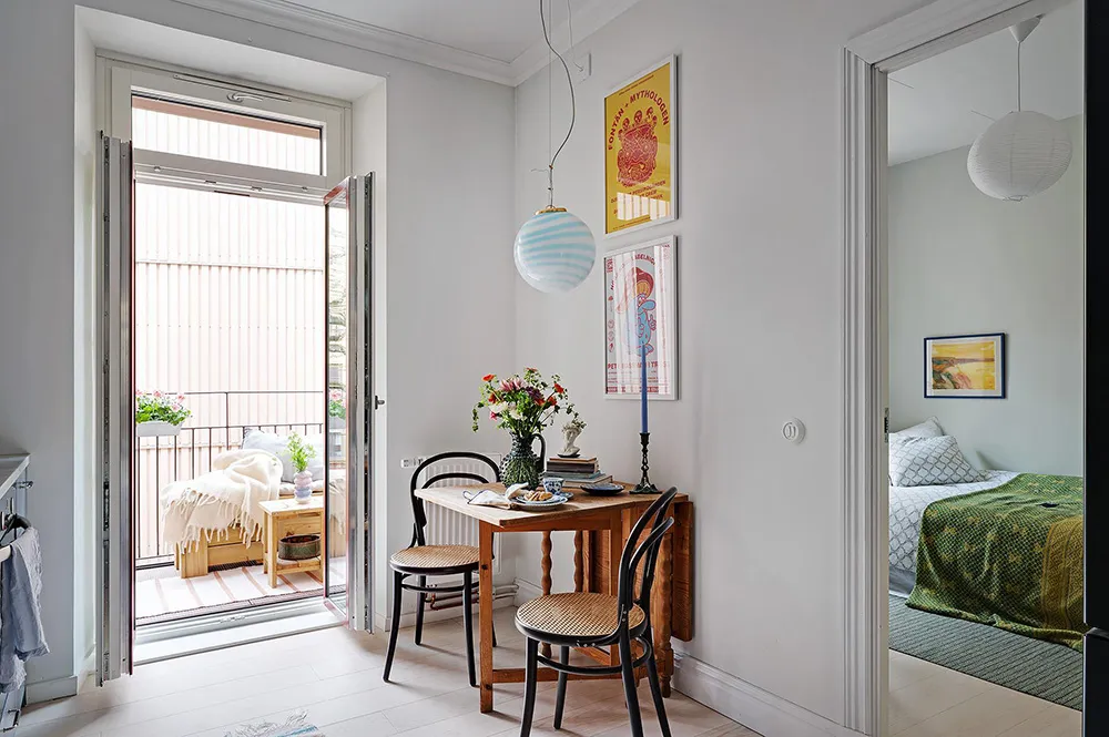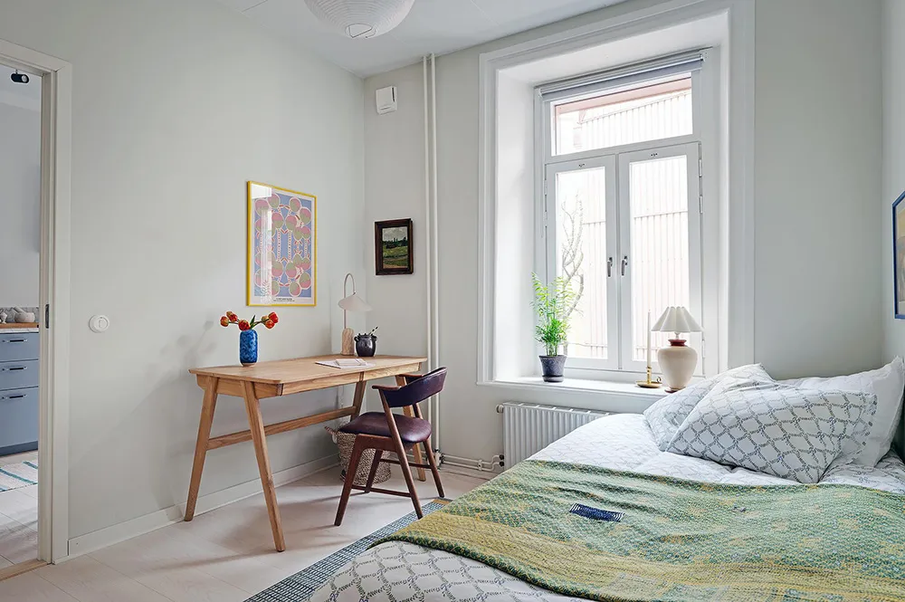 Rouge et bleu pâle : appartement pastel en Suède (77 m²)