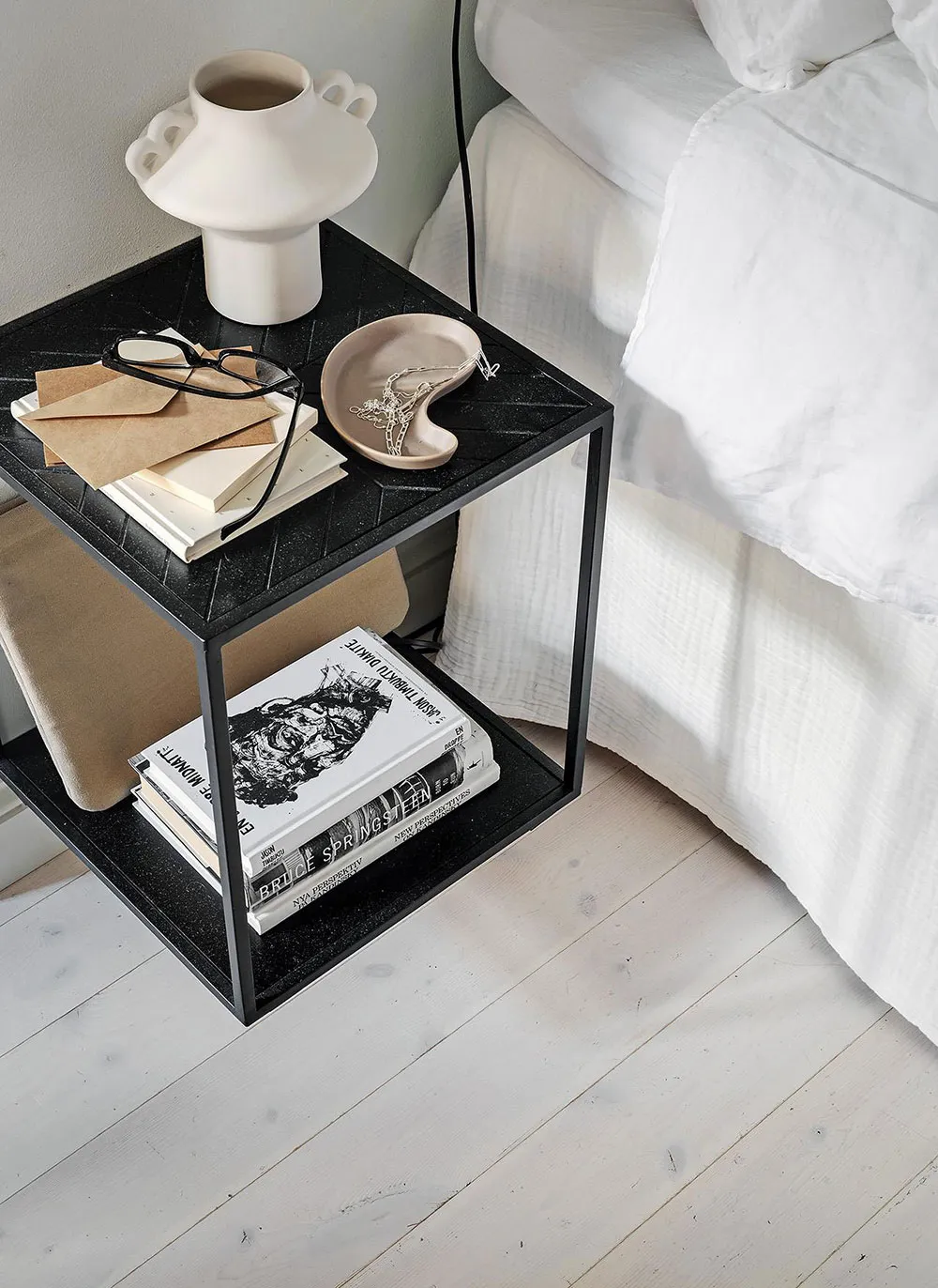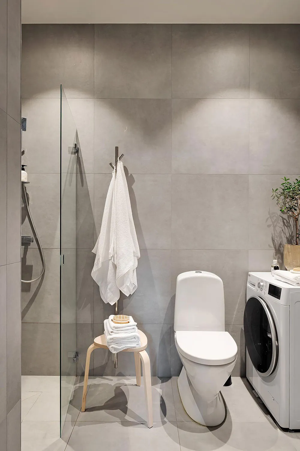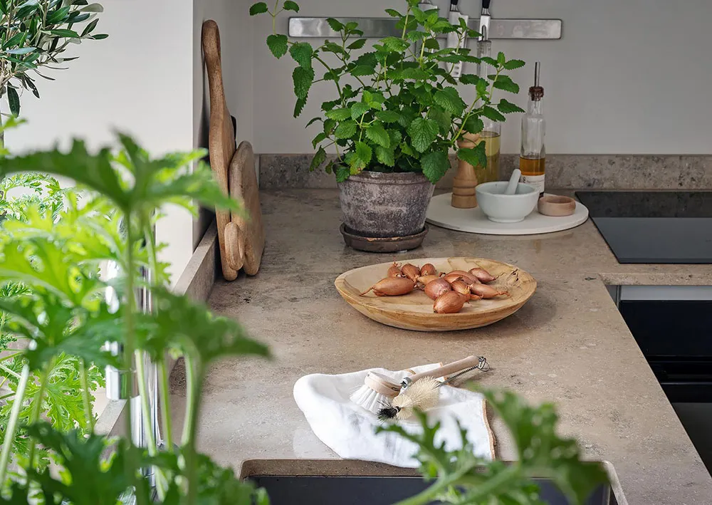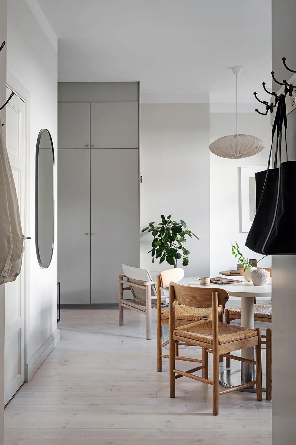 Intérieur beige à Gétteborg avec des détails floraux chaleureux