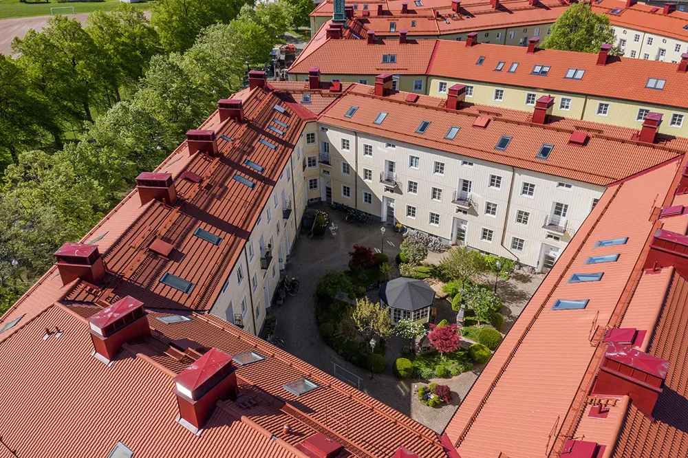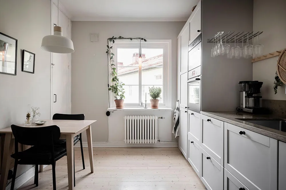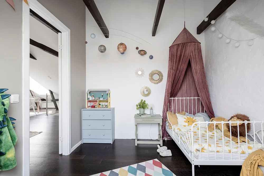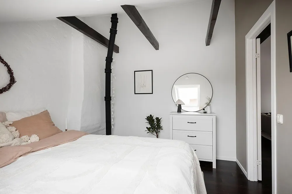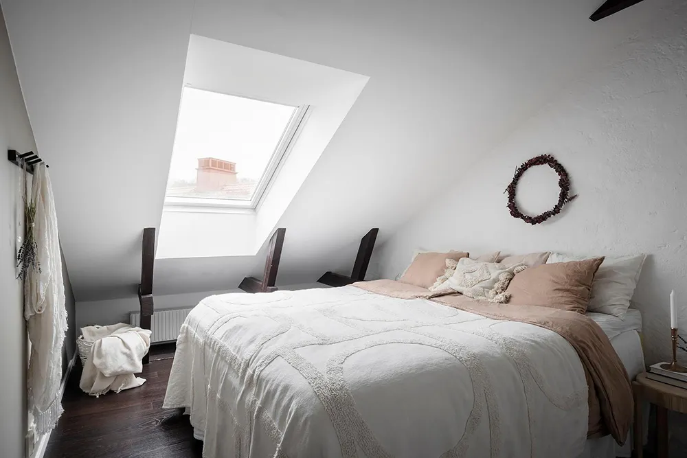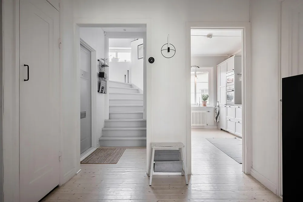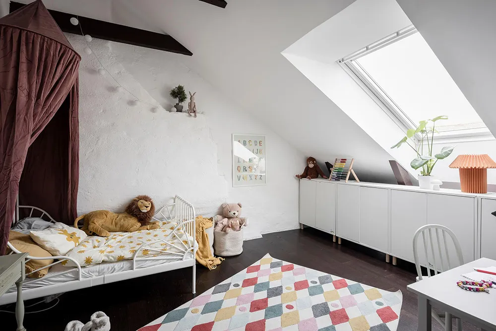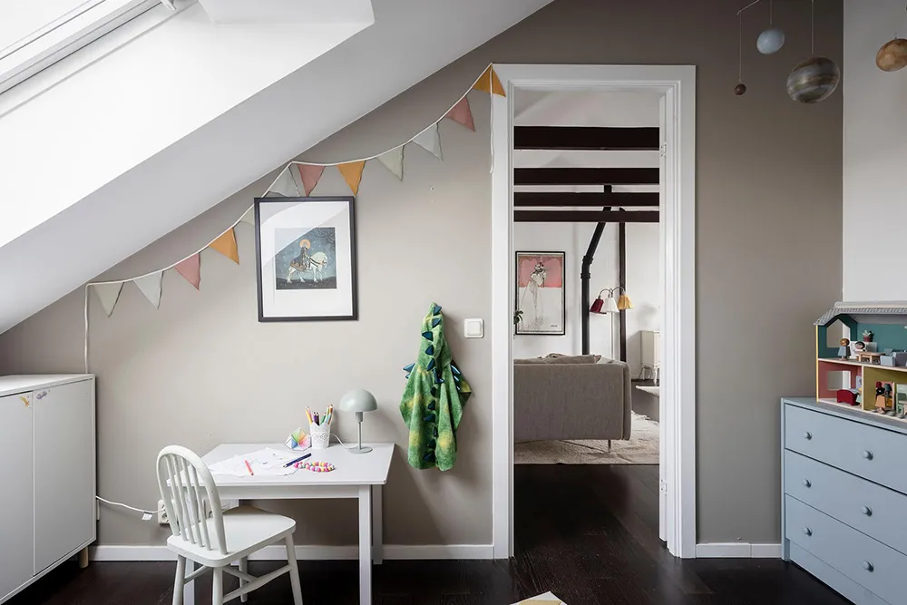 Cet appartement scandinave occupe les deux derniers étages d'un ancien bâtiment bas situé dans l'un des quartiers historiques de Göteborg.